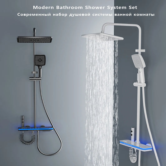 Bathroom Smart Shower System Set Temperature Digital Display LED Bathtub Rainfall Mixer Brass Shower Faucet Full Set with Lights