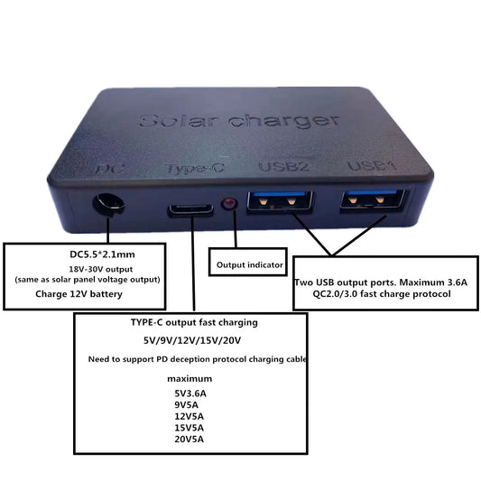 DIY Solar Controller 5V 9V 12V TYPE-C USB-1/USB-2Output Port Voltage Stabilizer Solar Panel Regulator