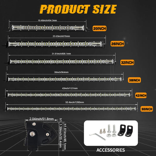 UNISHINE Slim 12D Led Light Bar 20-52inch Spot Flood Combo Beams LED Driving Light For SUV 4X4 Off Road LED Work Lamp 12V 24V
