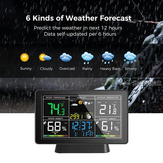 Tuya WiFi Smart Weather Station Temperature Humidity Meter Atmospheric Pressure Time Auto Calibration Moon Phase Weather Clock