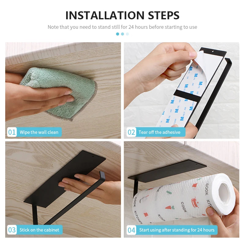 1. Self-adhesive paper towel holder, no drilling, no damage to the wall, strong adhesive, suitable for all kinds of smooth walls