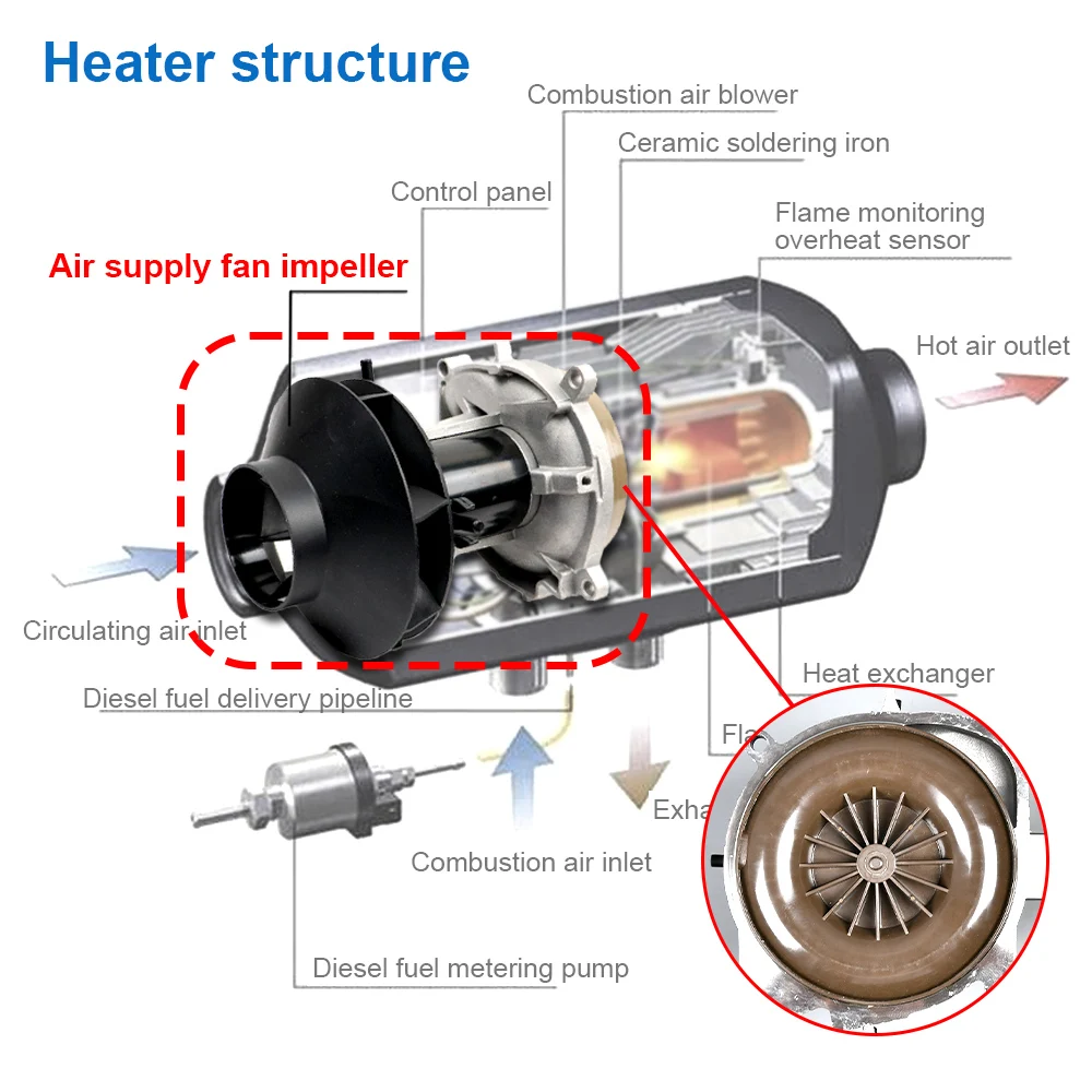 12V/24V 5KW Air Parking Heater Blower Combustion Fan Assembly Motor Start Engine Parts Diesel Air Parking Heaters D2 D4 Air Fan