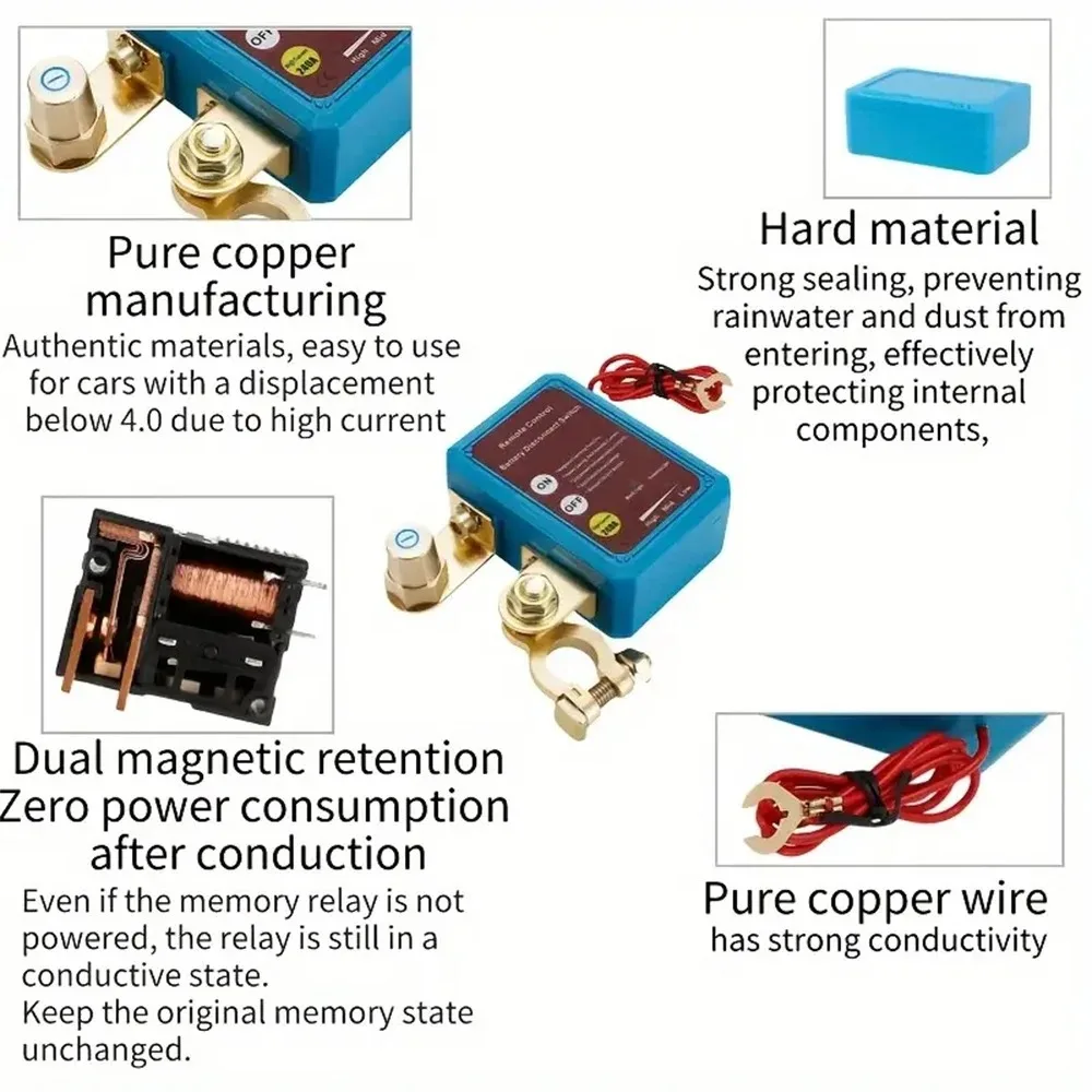 12V Battery Master Disconnect Switch, Battery Master Switch with Remote, Heavy Duty Car Battery Kill Switch, 240A 433MHz Anti-th