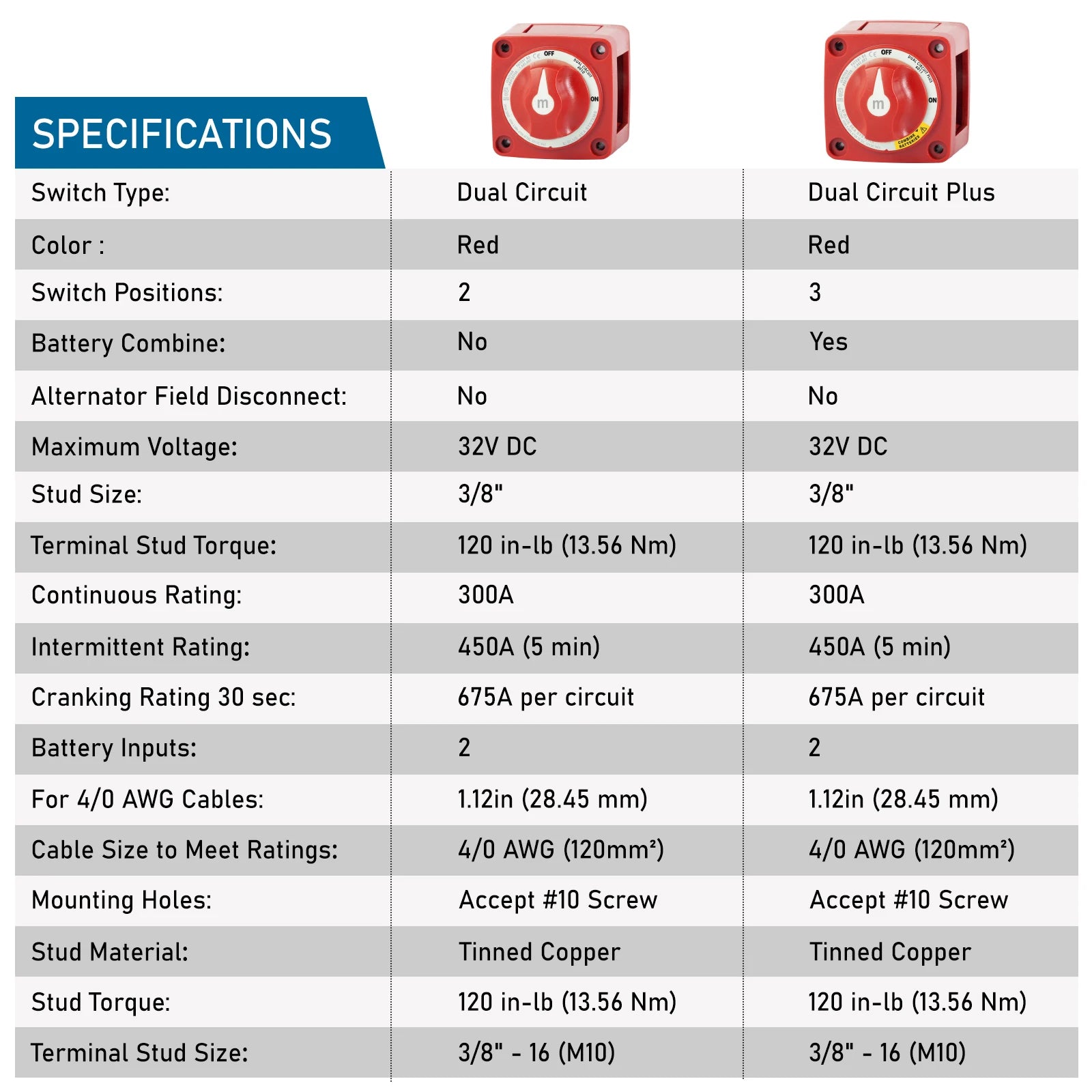This Mini Battery Switch is suitable for smaller boats such as center consoles or runabouts. The rating of the switch is almost as high as the e-Series switches but its compact size makes it more suitable for smaller boats. If you are installing this with large battery cables such as 2/0 awg and above you will find it easier to use the bigger switch if space is available.