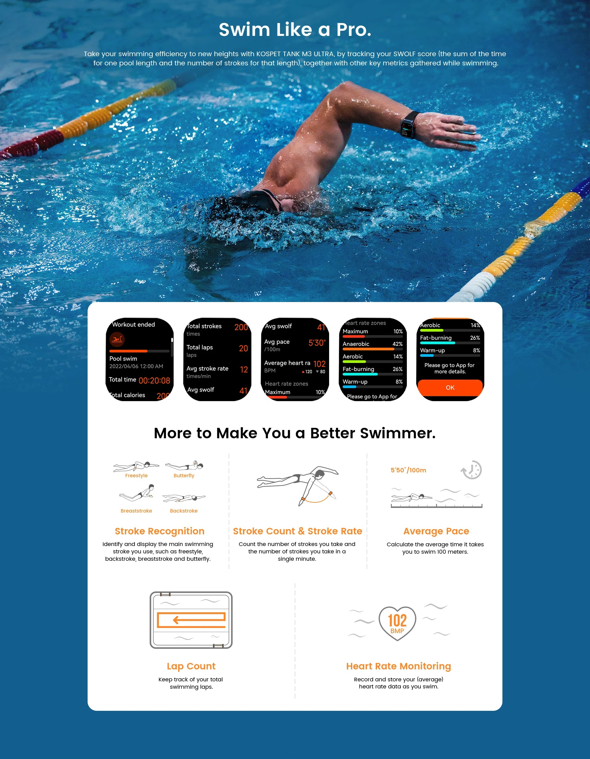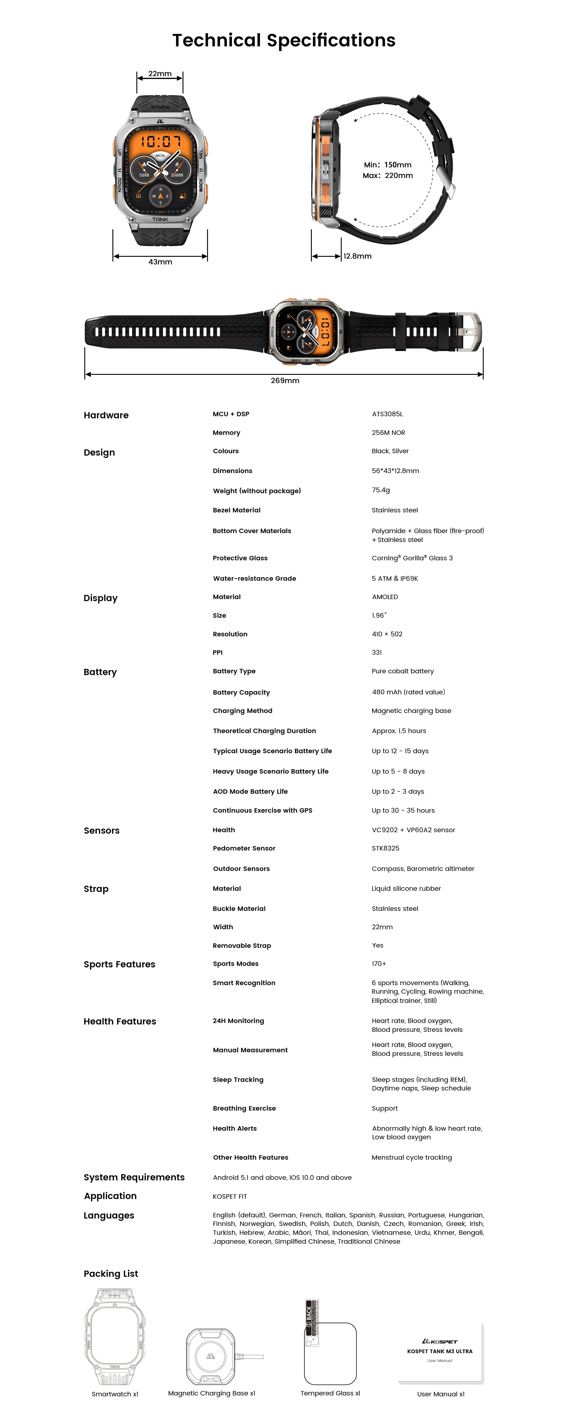 2024 KOSPET TANK M3 Ultra GPS Smartwatches Men Women Waterproof Smart watch 480mAh Digital Fitness AOD Male Electronic Watches