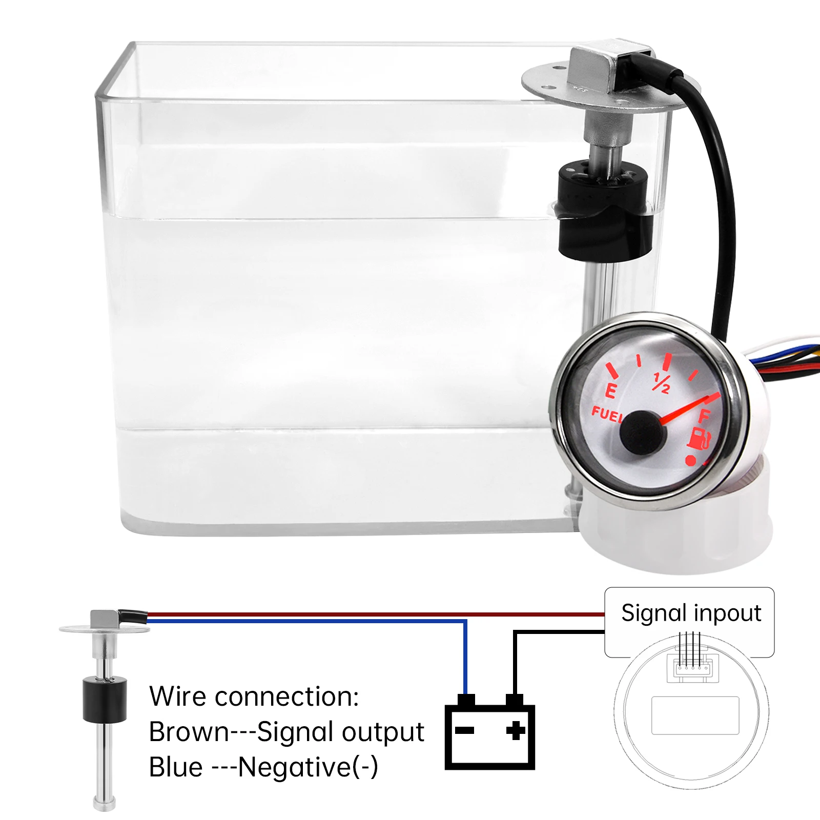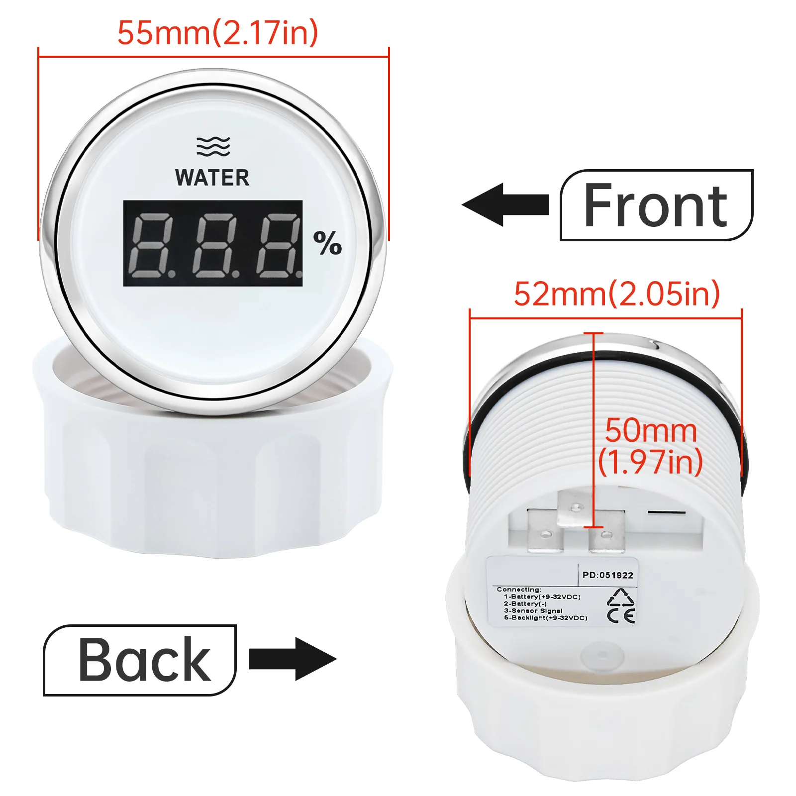 2"52mm Car Digital Gauge A5 Fuel Float Sensor 0~190ohm With Indicator Water Level Tank Meter Red Backlight for Yacht Marine Boat