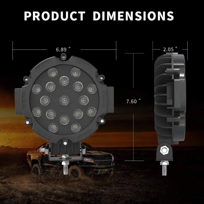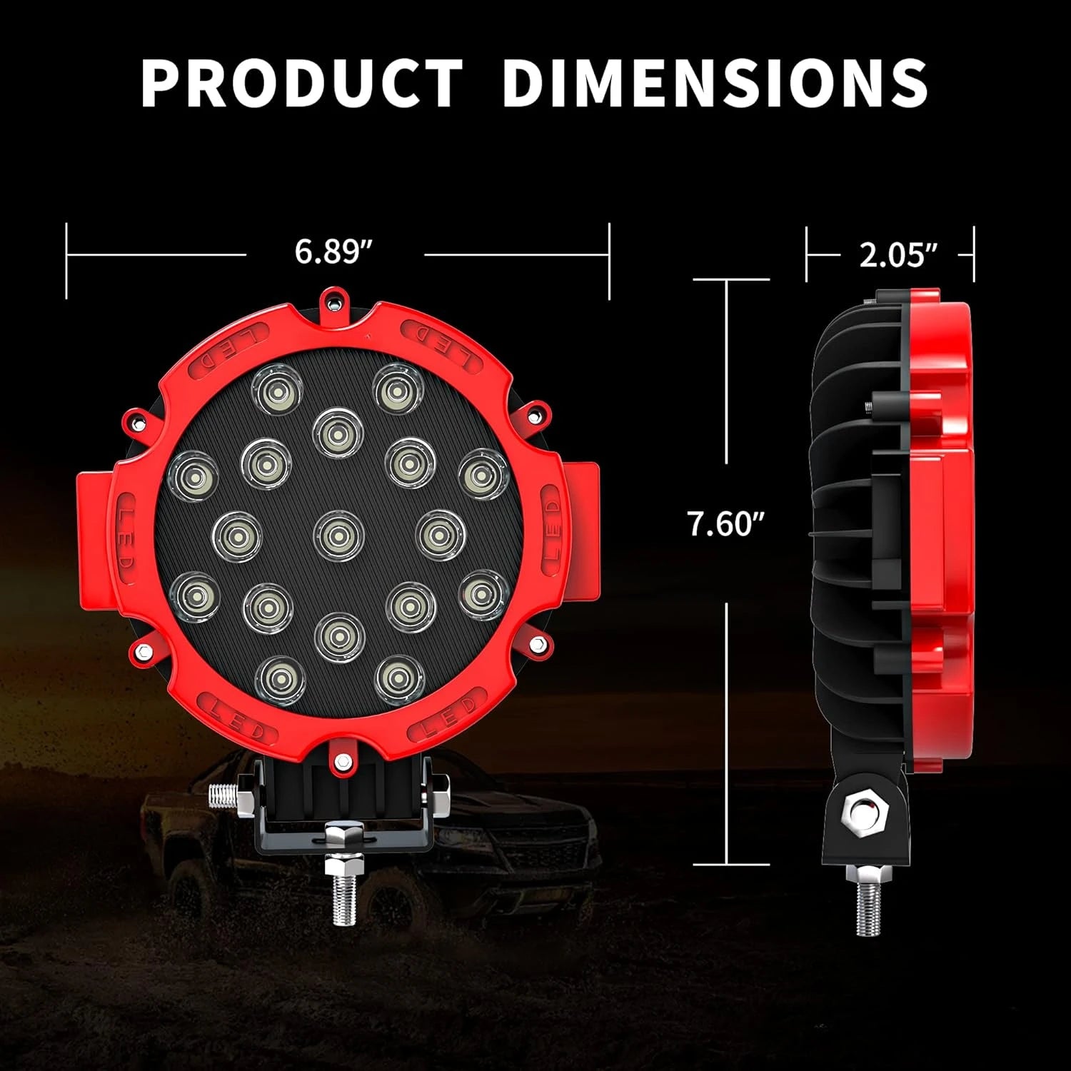 2PCS 7 Inch 51W Round LED Offroad Lights, 5100LM Spot Driving Light Pod Bumper Roof Fog Light Fit for Boat, Jeep, ATV, SUV