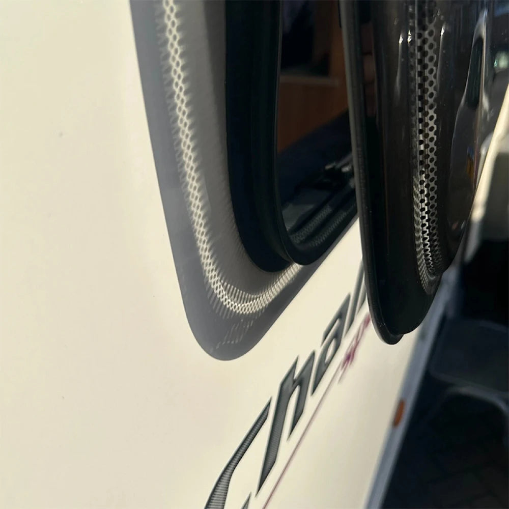 The idea of the unit is to open the caravan window to allow for ventilation while stopping the window from flapping when the opening is too small for the window rods to hold it firm.