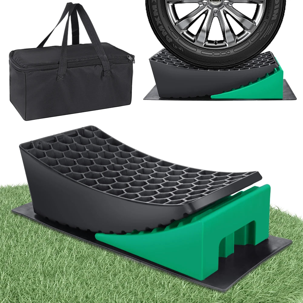 2PCS RV Leveling Ramps with Mats and Storage Bag, Non-Slip Heavy Duty Plastic Ramp Wedges for Camper Trailer Motorhome Support