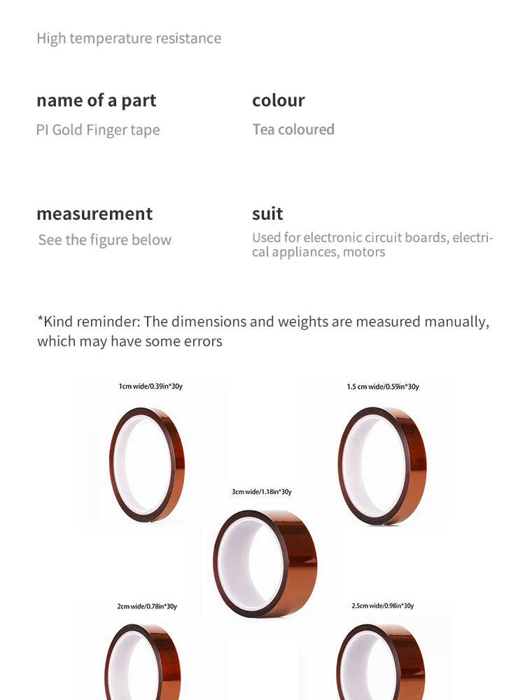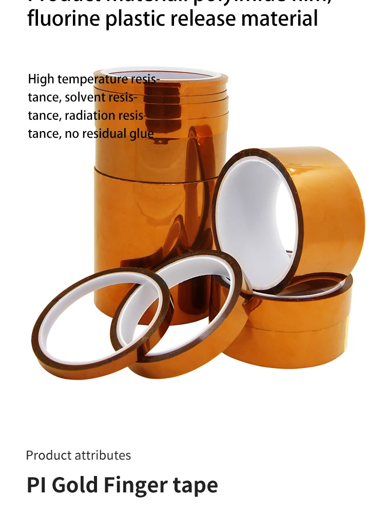 30m Long Gold Finger High Temperature Resistant Tape Polyimide Tape Multi Size Pet Anti Static Lithium Battery Insulation Tape
