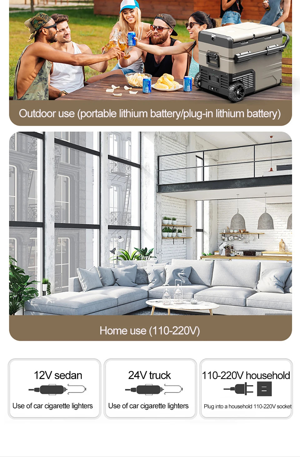 6. Dual use for car and home use: The 12V/24V cigarette lighter plug is suitable for cars and trucks, and the 110-220V adapter can be used at home (lithium batteries for outdoor use need to be purchased separately from the seller)