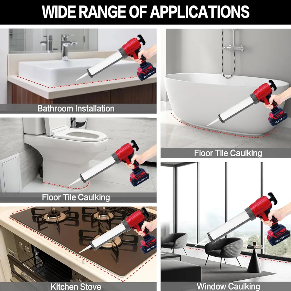 【Widely Use】Suitable for applying glass glue, caulking, sealant etc. This caulking gun is suitable for all common 10oz/300ml sealants. Widely used for filling, sealing and repairing some narrow gaps in walls, windows, balcony doors and windows, shower/wash basin installations etc.