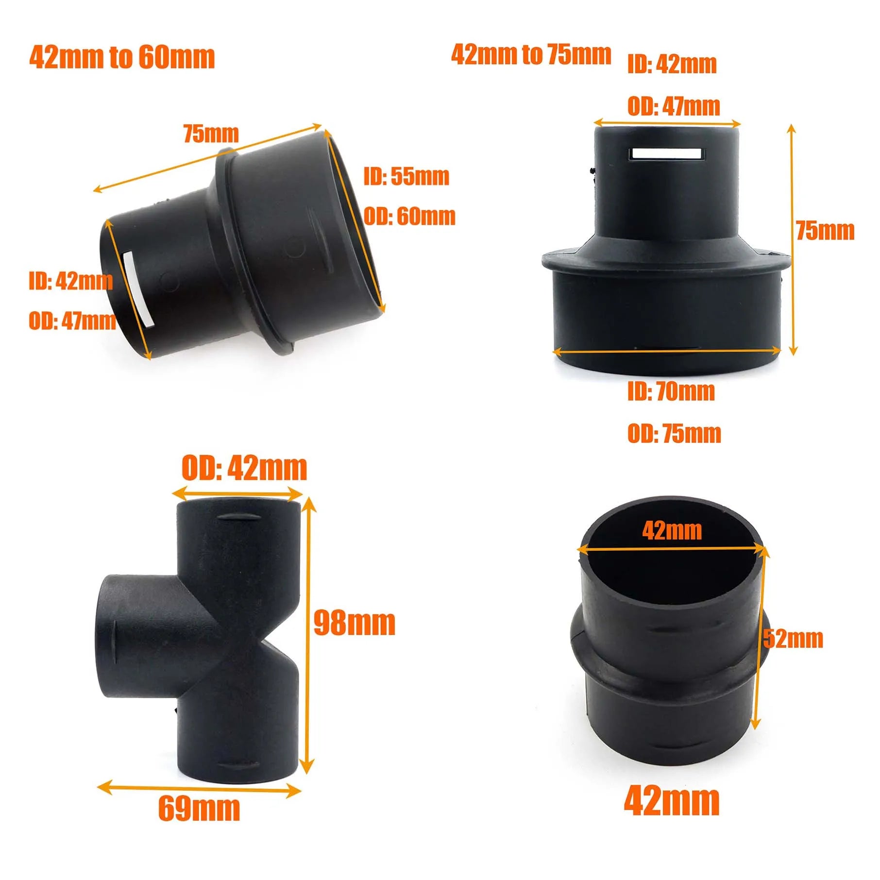 42to60mm 42to75mm Converter 42mm 60mm 75mmDiesel Heater Air Duct Ducting Connector Black For Car Truck VAN Camper