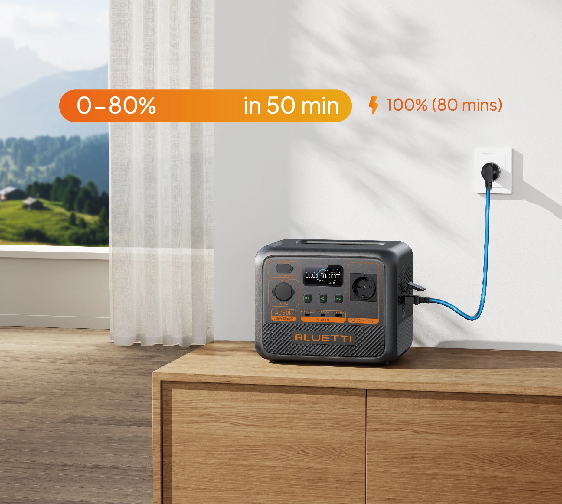 AC: 50 mins (80%) / 80 mins (100%) PV: 3H |