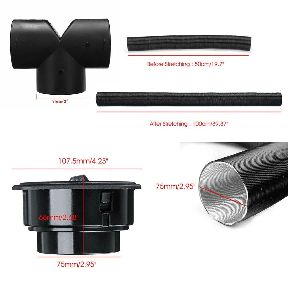 75mm Diesel Heater Pipe Duct + Warm Air Outlet For Webasto For Eberspacher For Propex Diesel Heater Vent Hose Clips Set