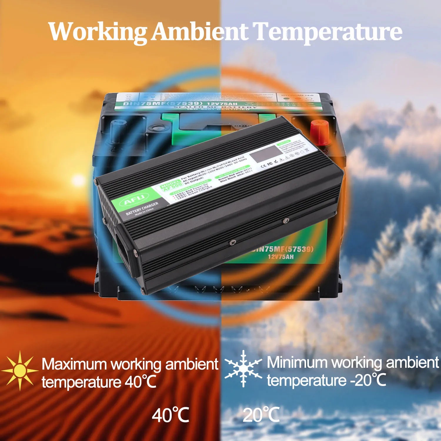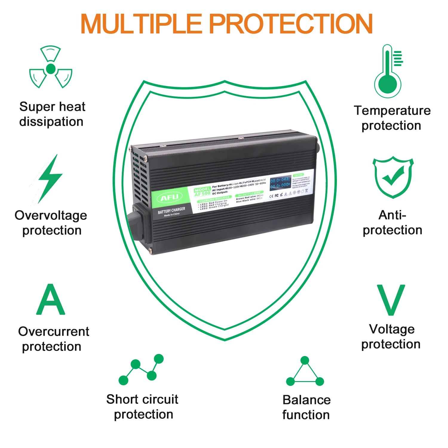 Three-stage Intelligent Charging Mode: Constant Current~Constant Voltage~Trickle(Floating Charge) to Ensure Battery Fully Charged (Floating Charge is when Lead Acid charger) |