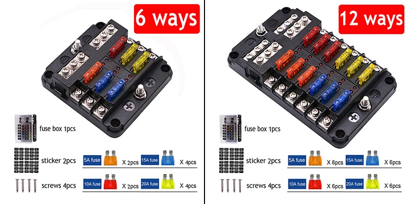 ACCESTING 6/12 Way Blade Fuse 12-24V Car Boat Fuse Box Holder With Plastic Cover For Power Panel Board Camper RV Accessorie