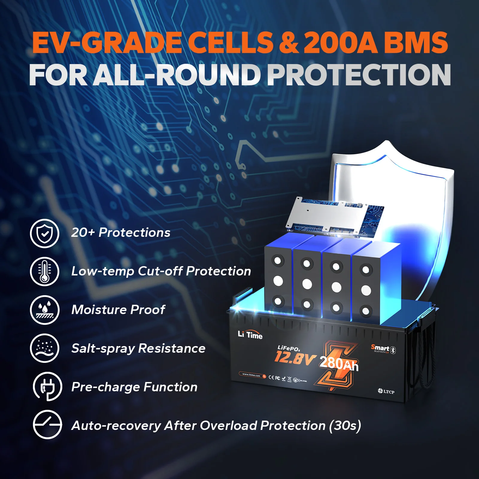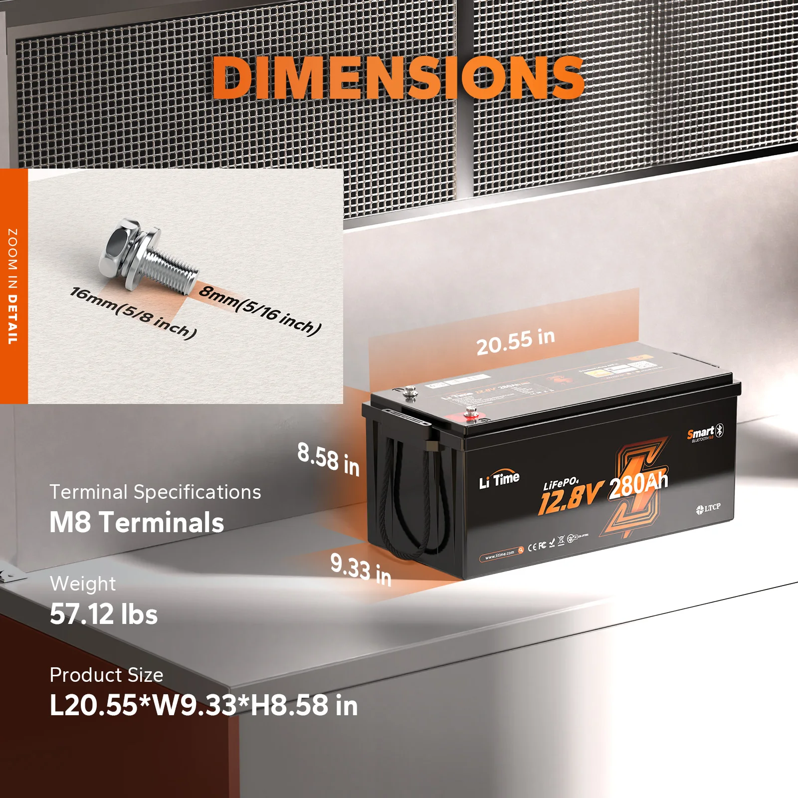 Best Seller LiTime 5 Years Warranty Bluetooth 12V 280Ah LiFePO4 Lithium Deep Cycle Battery for Rvs and Homes and Off-grid