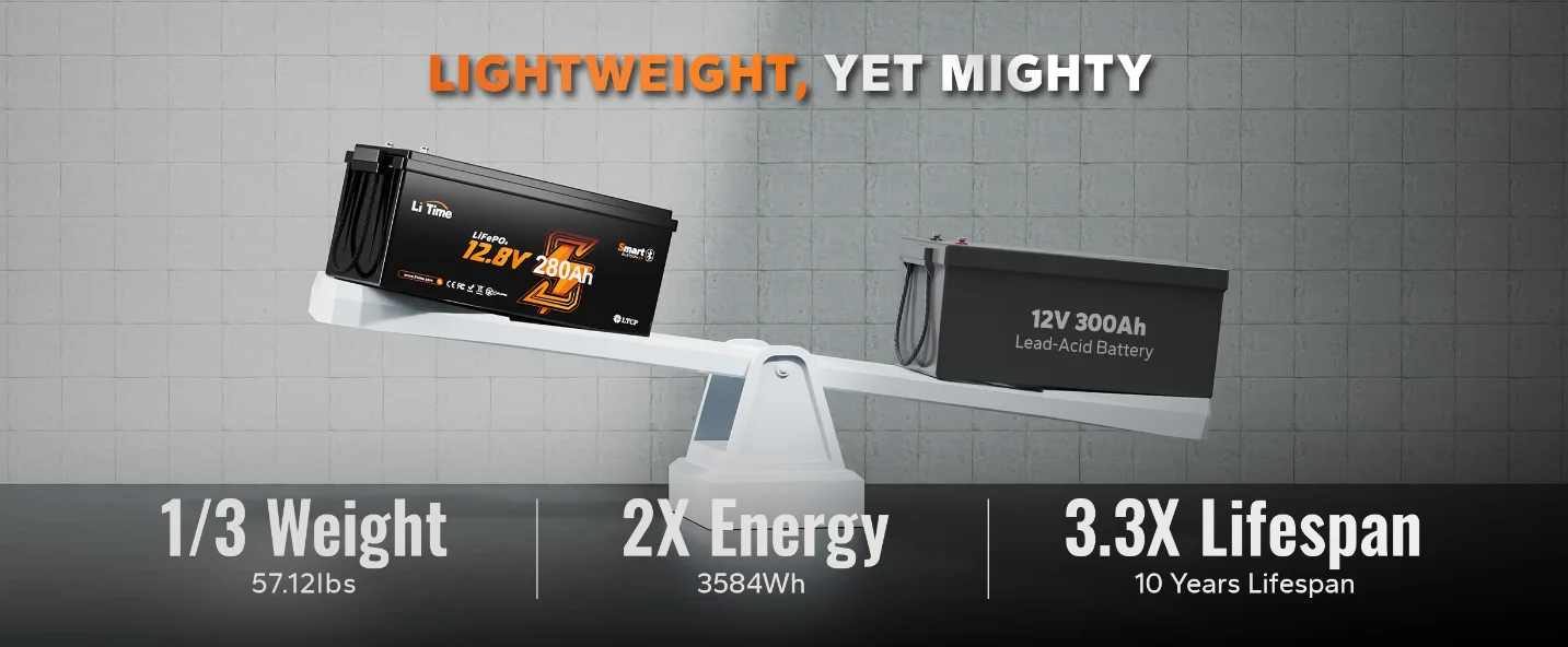 LiTime 12V 280Ah Bluetooth Lithium Battery-3584Wh Power for RVs, Homes & Off-Grid