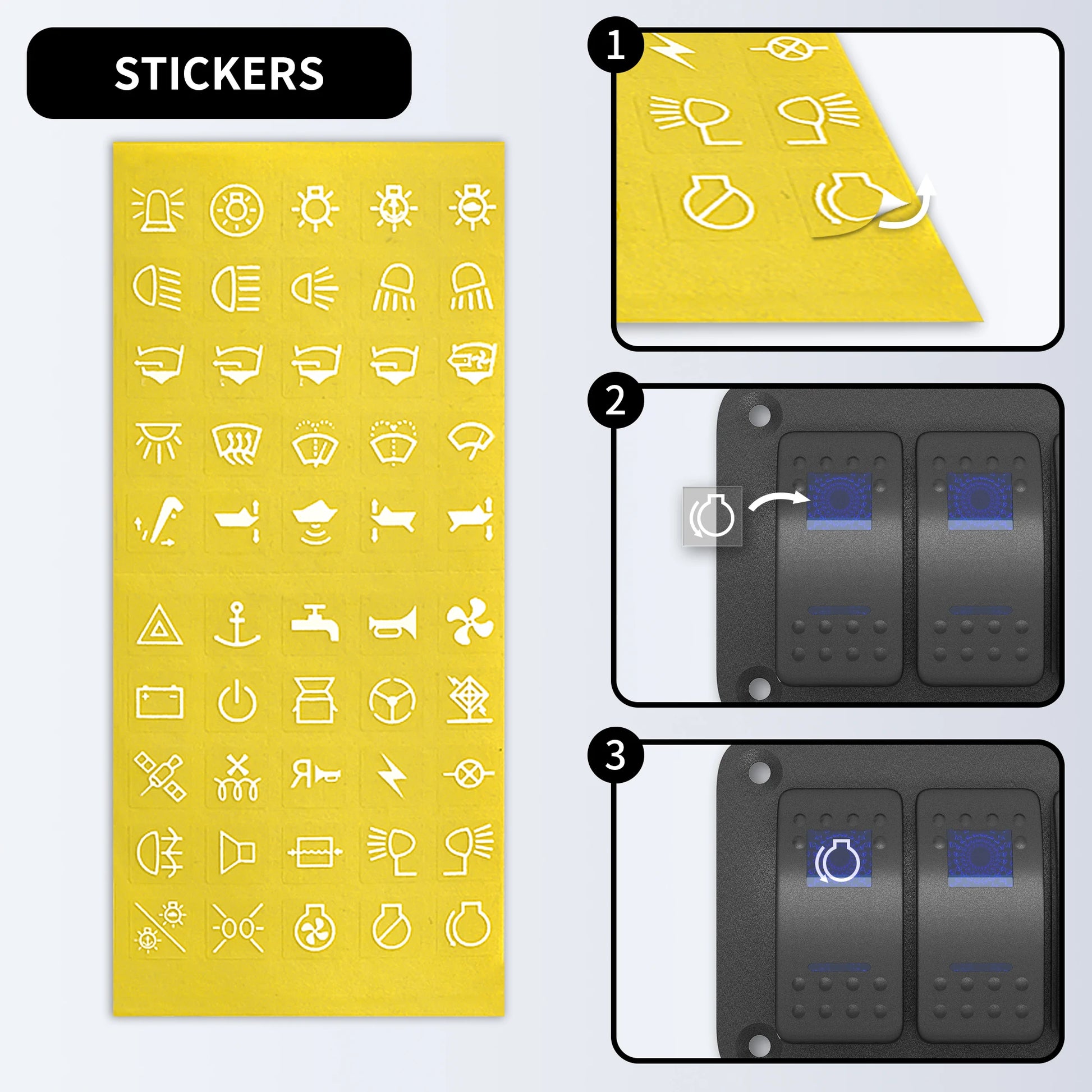 【What You Get】7 gang marine switch panel dual with USB charger sockets, one piece of night glow self-adhesive labels and screw set, suitable for all types of circuit control and charging needs.