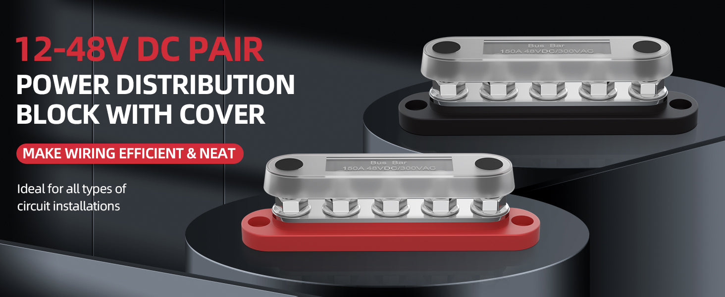 150A bus bar, and its thickened copper base plate can apply to max 48V DC circuits.