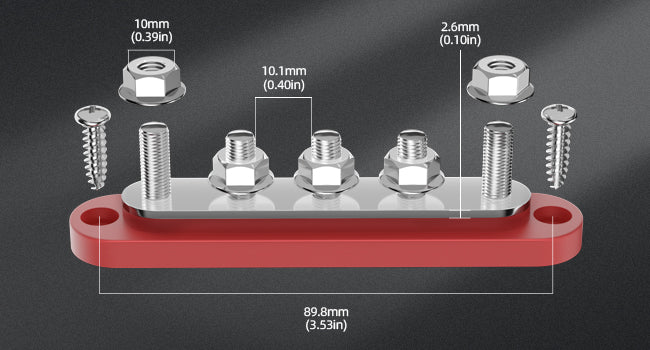 • Package Included - A pair of 12V battery bus bars with covers: A red positive bus bar and a black ground bus bar, two sets of mounting screws and each of bus bar with 5 terminal posts.