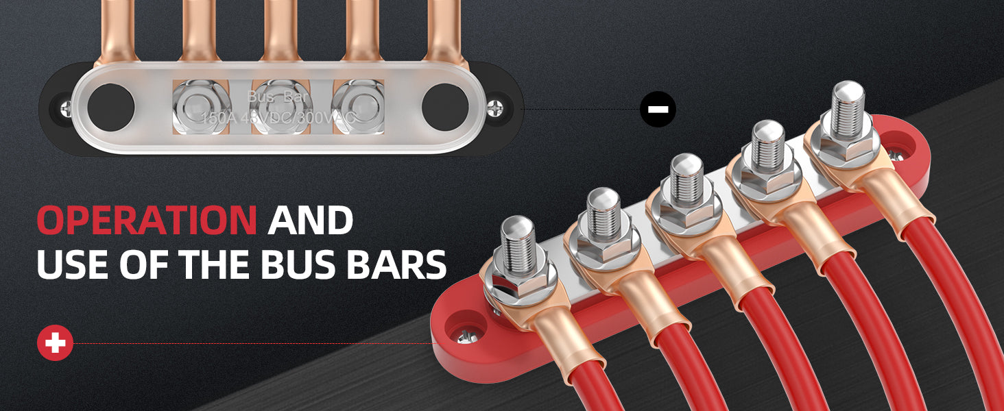 150A bus bar, and its thickened copper base plate can apply to max 48V DC circuits.