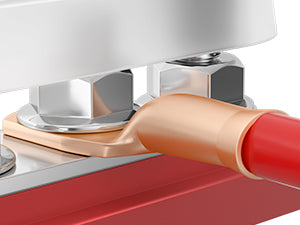 • 1/4" Stud Terminal - The battery bus bar terminal block with 5 x 1/4" (M6) studs terminal, which makes the 12V busbar able to accept a wide range size terminal connectors and wires install. And the washer design nuts also makes the contact of nut, wire lug and the terminal block closer, which will be much easier to tighten and safer to use.