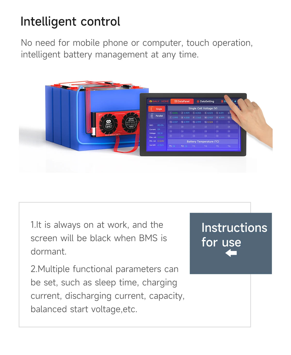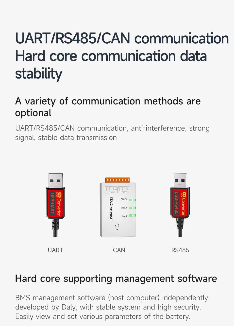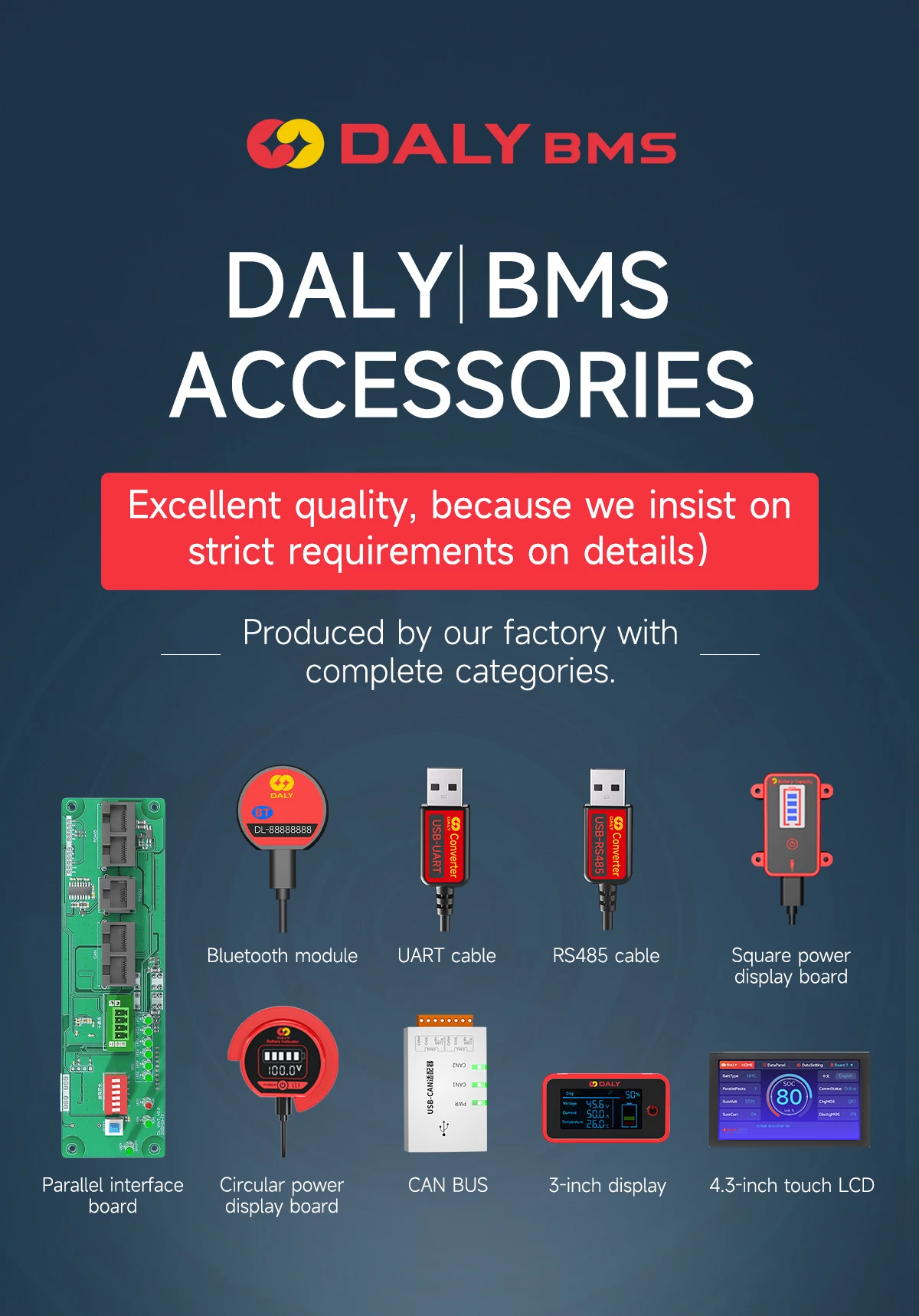 Daly Smart BMS Accessory WIFI Bluetooth USB To UART RS485 Cables Module NTC Battery SOC Capacity Indicator LCD Screen Board