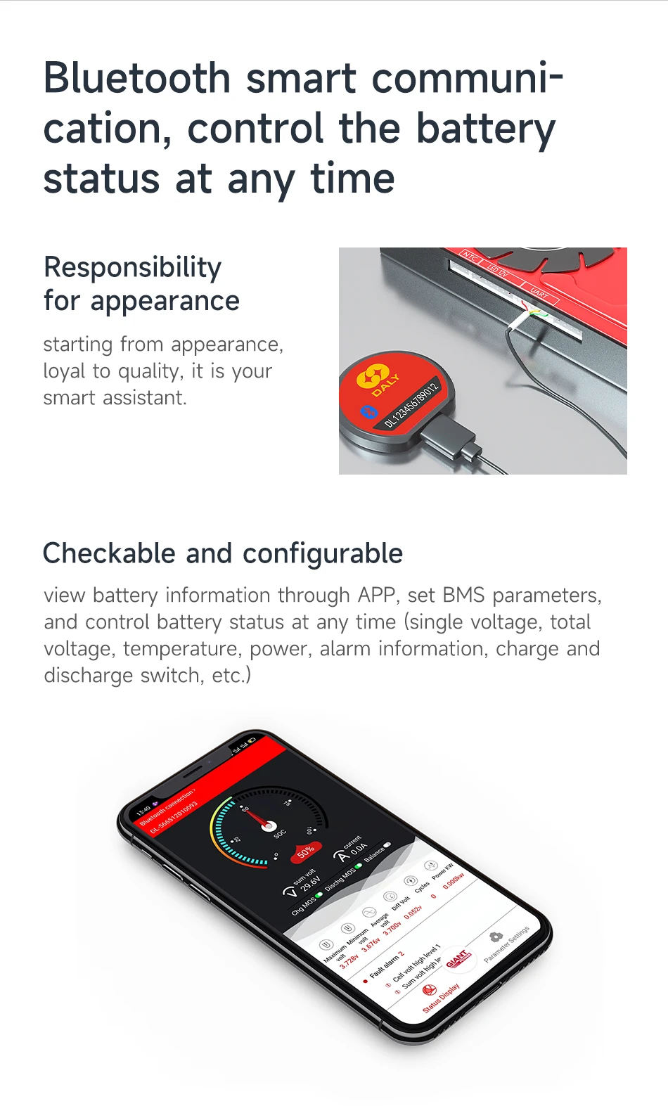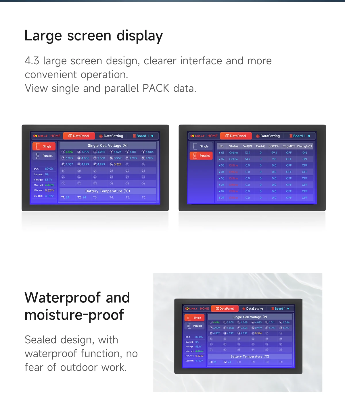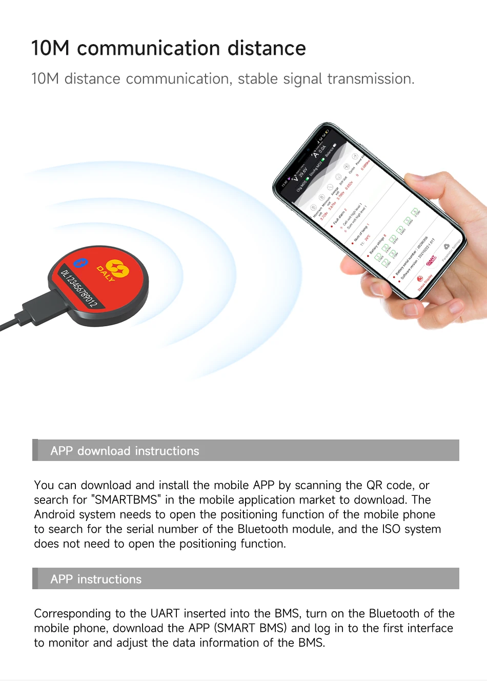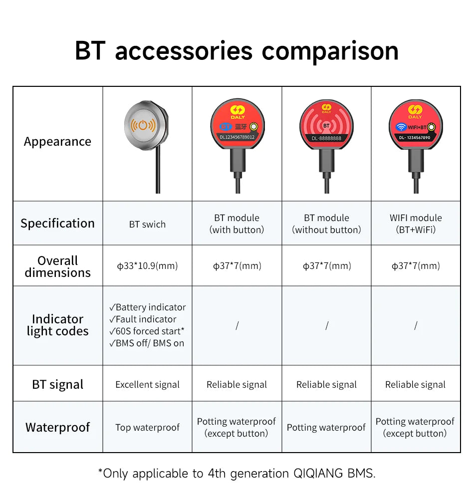 Daly Smart BMS Accessory WIFI Bluetooth USB To UART RS485 Cables Module NTC Battery SOC Capacity Indicator LCD Screen Board