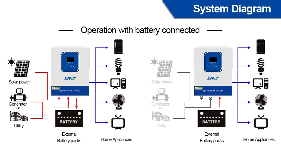 EASUN POWER Hybrid Solar Inverter 4KW 2KW Pure Sine Inverter 24V 12V Dropshipping Solar Inverter Charger power bank Inversor