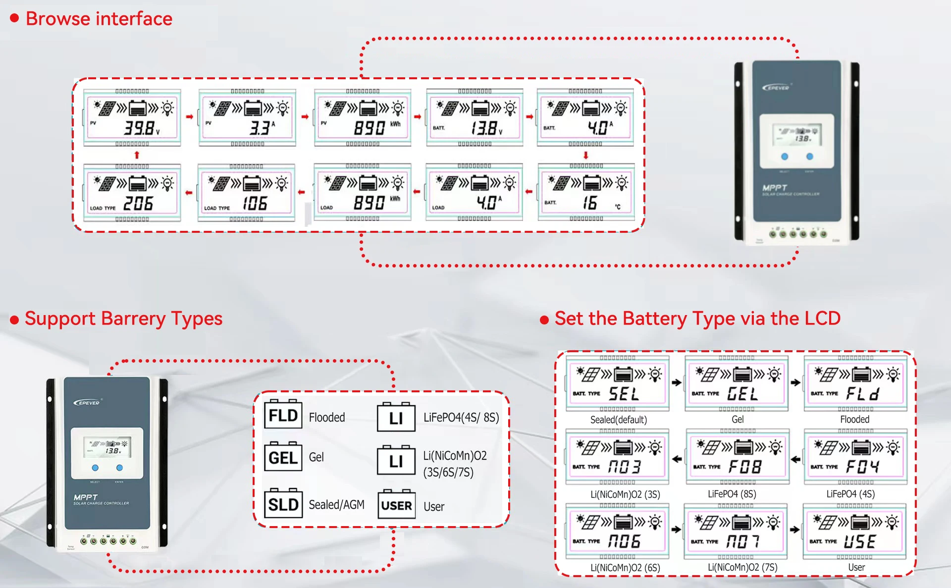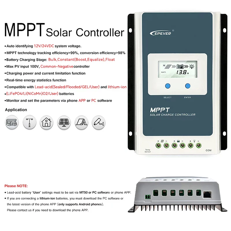 EPEVER Tracer MPPT Solar Charge Controller 10A 40A 30A 20A With LCD Solar Regulator 12V 24V Auto Tracer 2206AN 4210AN 3210AN-G3