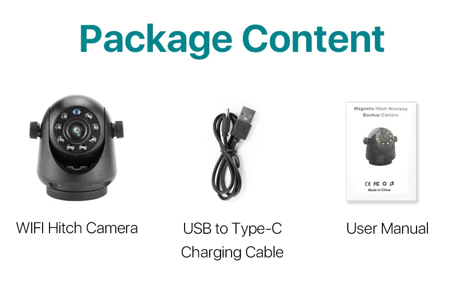 • Wireless Trailer RV Backup Camera---WiFi hitch camera has built-in battery as power supply, no need of any wires connected when working, truly wireless or cordless. Widely applied to vehicles which can provide 10-30V power supply like Gooseneck Horse, Boat, Trailer, Fifth Wheels, RV, Camper, Car, Sedan, SUV, and so on.