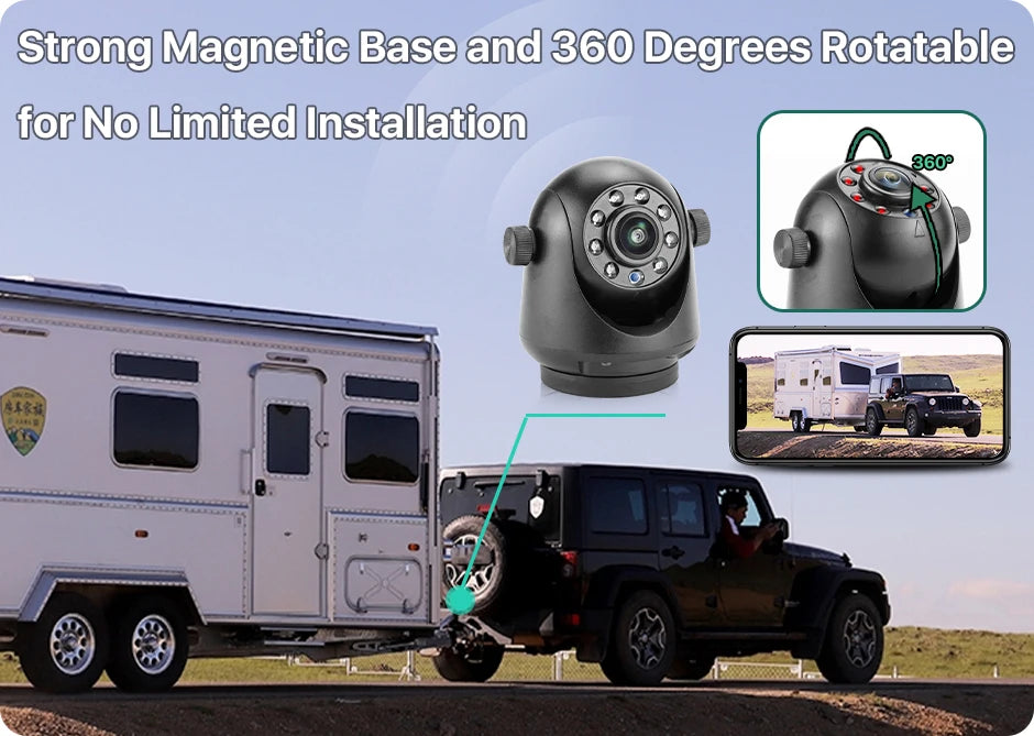 Our WIFI wireless magnetic camera use smart device as a screen like Android or Apple mobile phone. It can be applied to Trailers, 5TH wheel, etc.