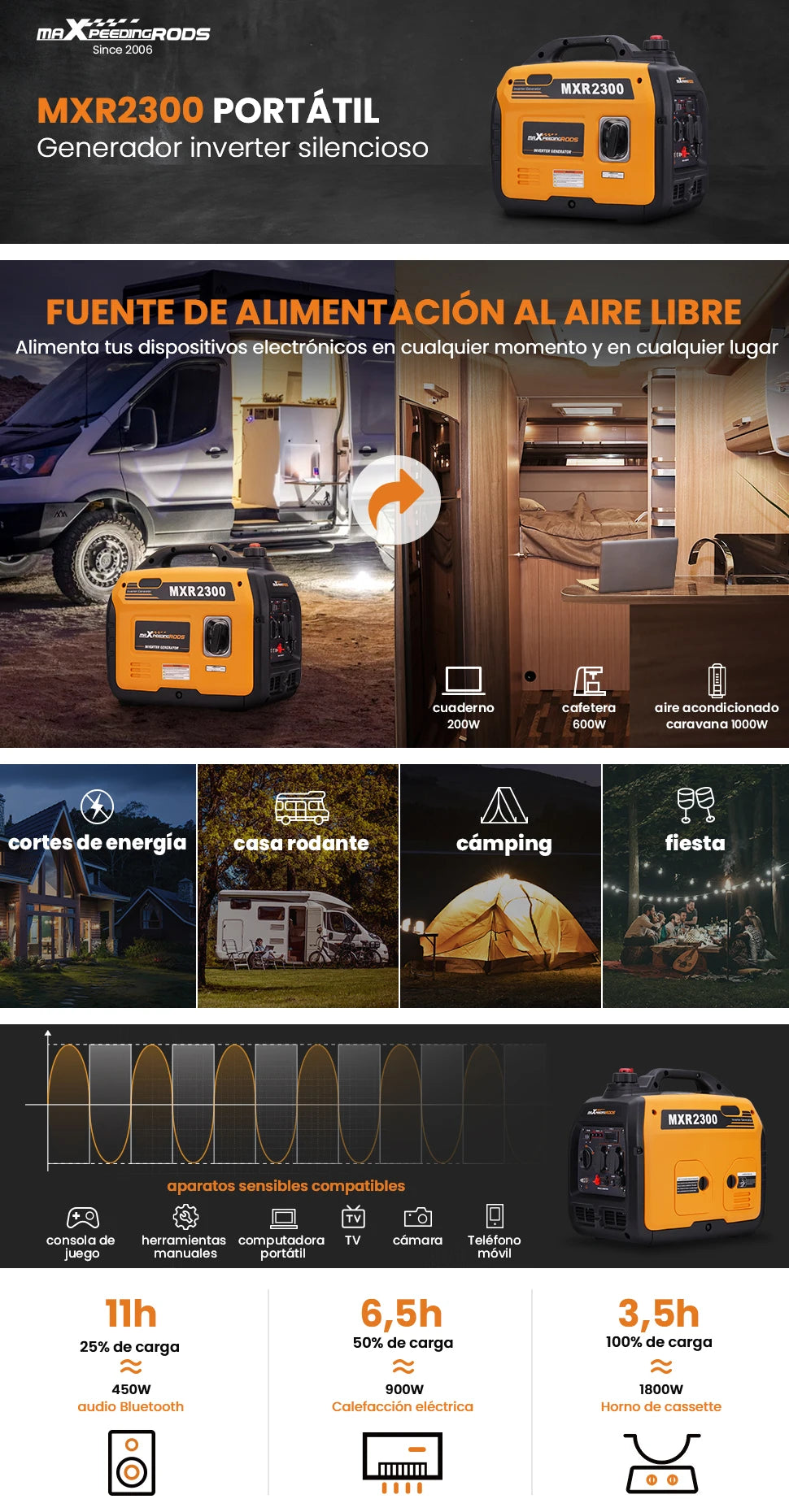 • The MXR2300 inverter generator not only provides power for large household appliances (NEVER use indoors) and power tools, but also serves as an emergency generator in the event of a power outage,