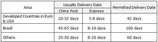 Sometimes international delivery is highly depended on the local customs and post service. If you couldn’t receive your parcel in time, please contact us firstly. We’ll responsible for any damages or losses occurred during shipping.