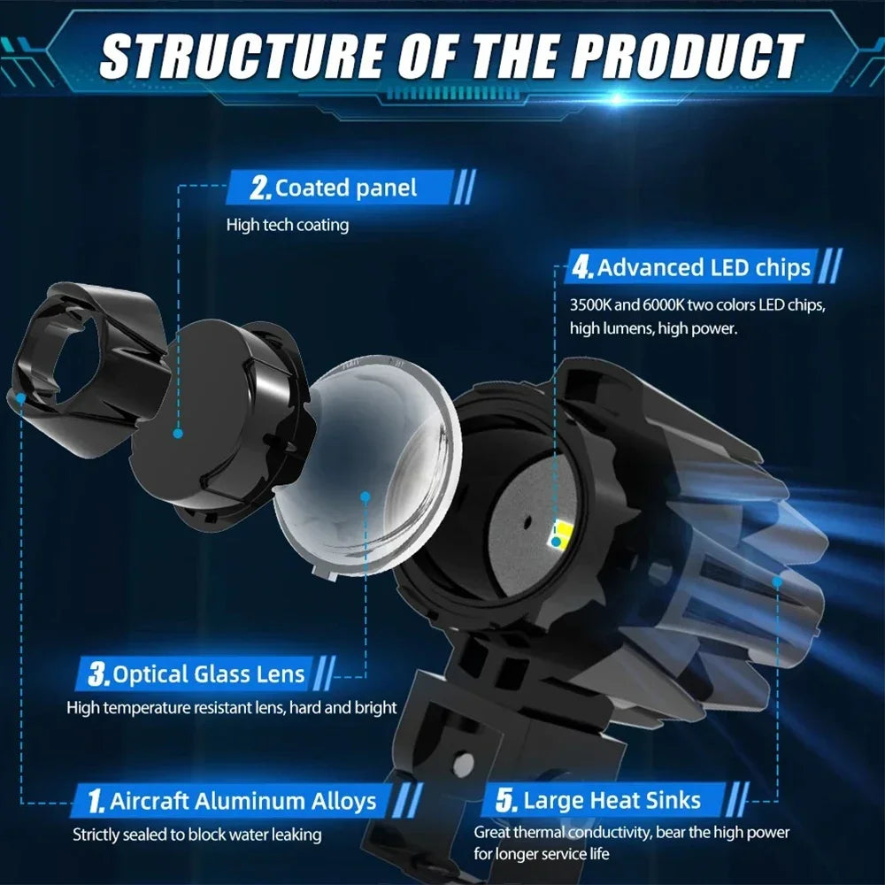 LED Motorcycle Spotlight 200W Headlight Fog Lights Accessories Off Road ADV GS UTV Truck Assisted Lamp Auxiliary Lights 12V 24V