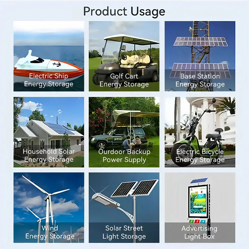 Solar energy storage system solar power ups motor starting battery, Electric cars, Engine start batteries, power tools, golf carts, touring cars, electric motorcycles, electric bicycles, power tools, solar storage,wind energy systems, LED Street lamp, Backup system and UPS, mobile devices, backup power supplies, RV, caravans, inverter, etc.