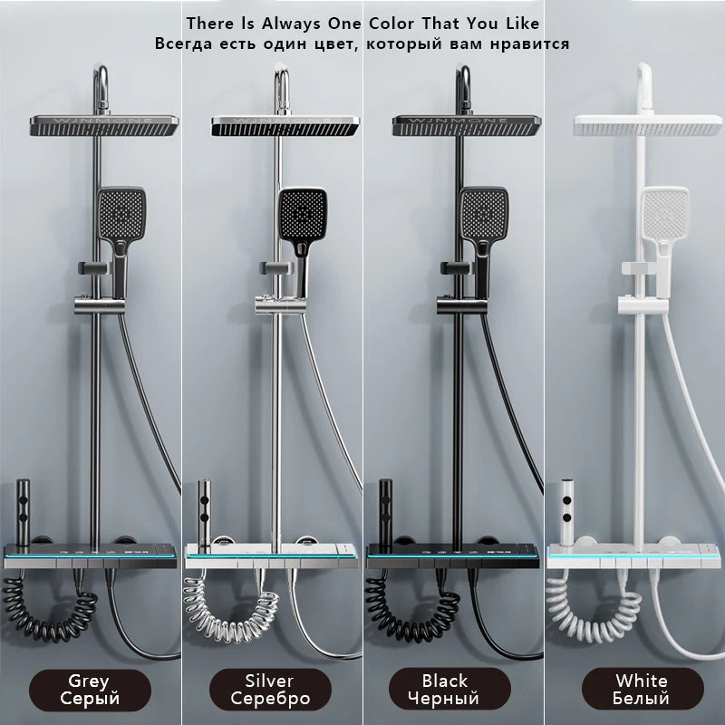 Modern Bathrooms Shower System Set Glass Panel Bathtub Rain LED Display Rainfall Shower Mixer Tap Thermostatic Faucet with Light