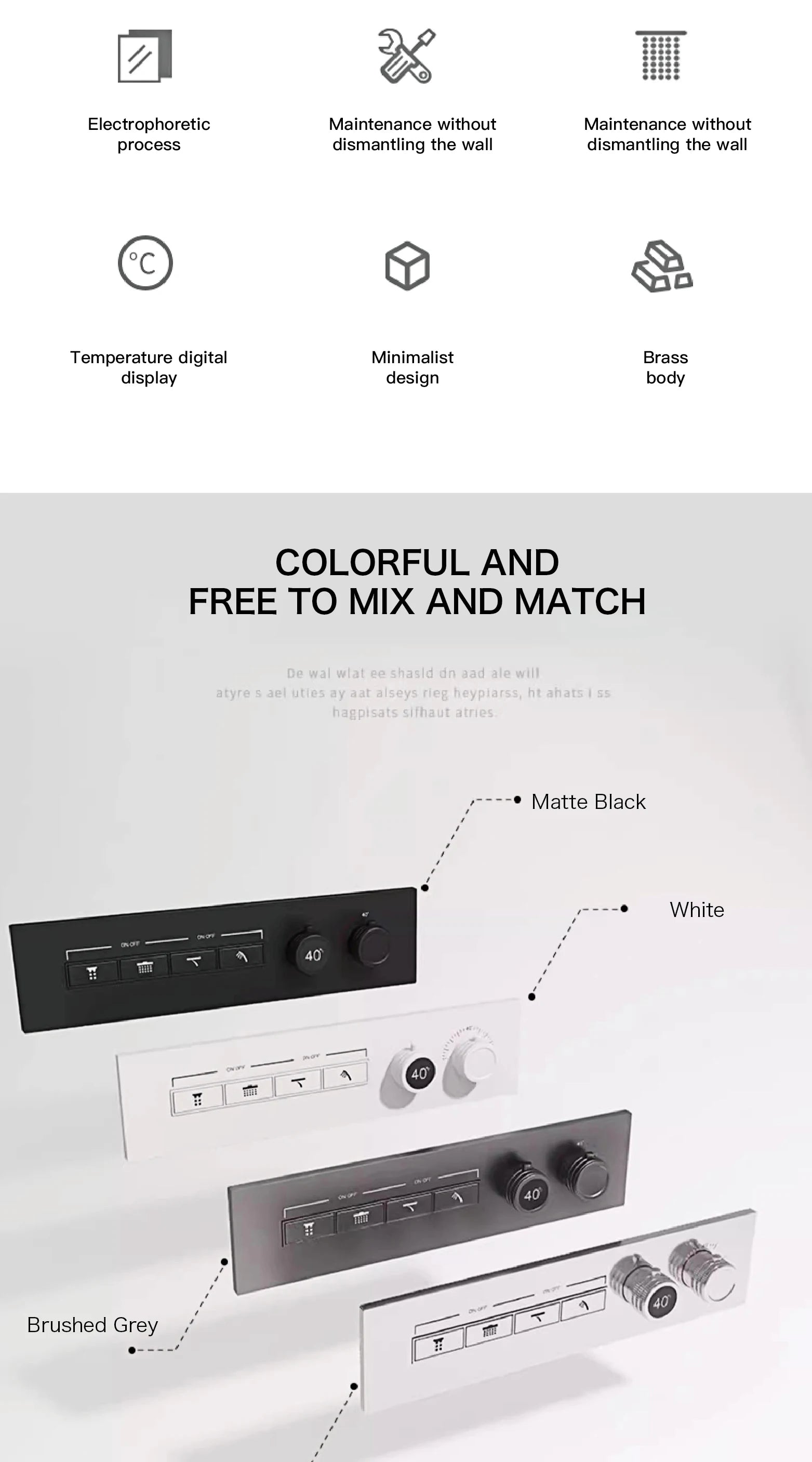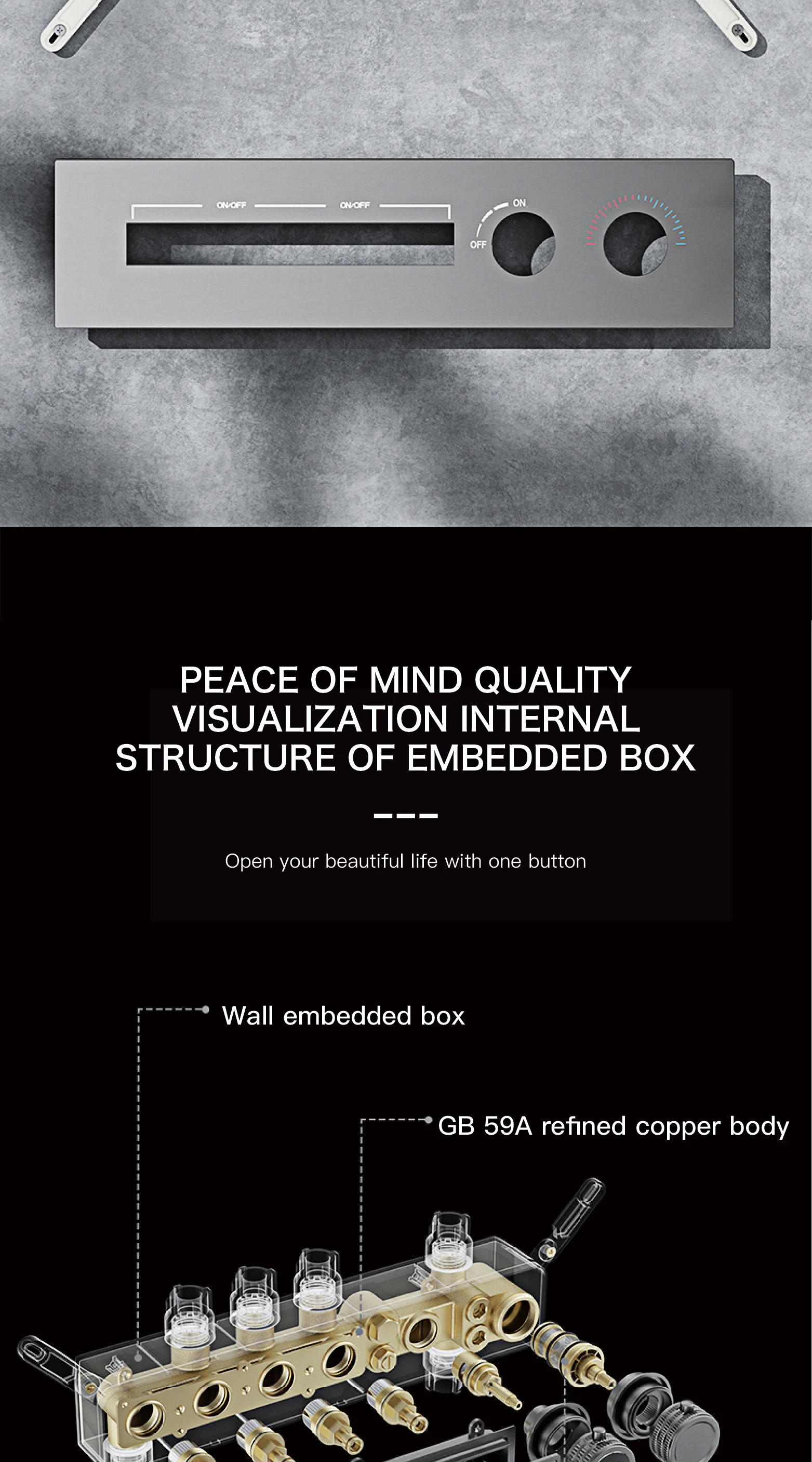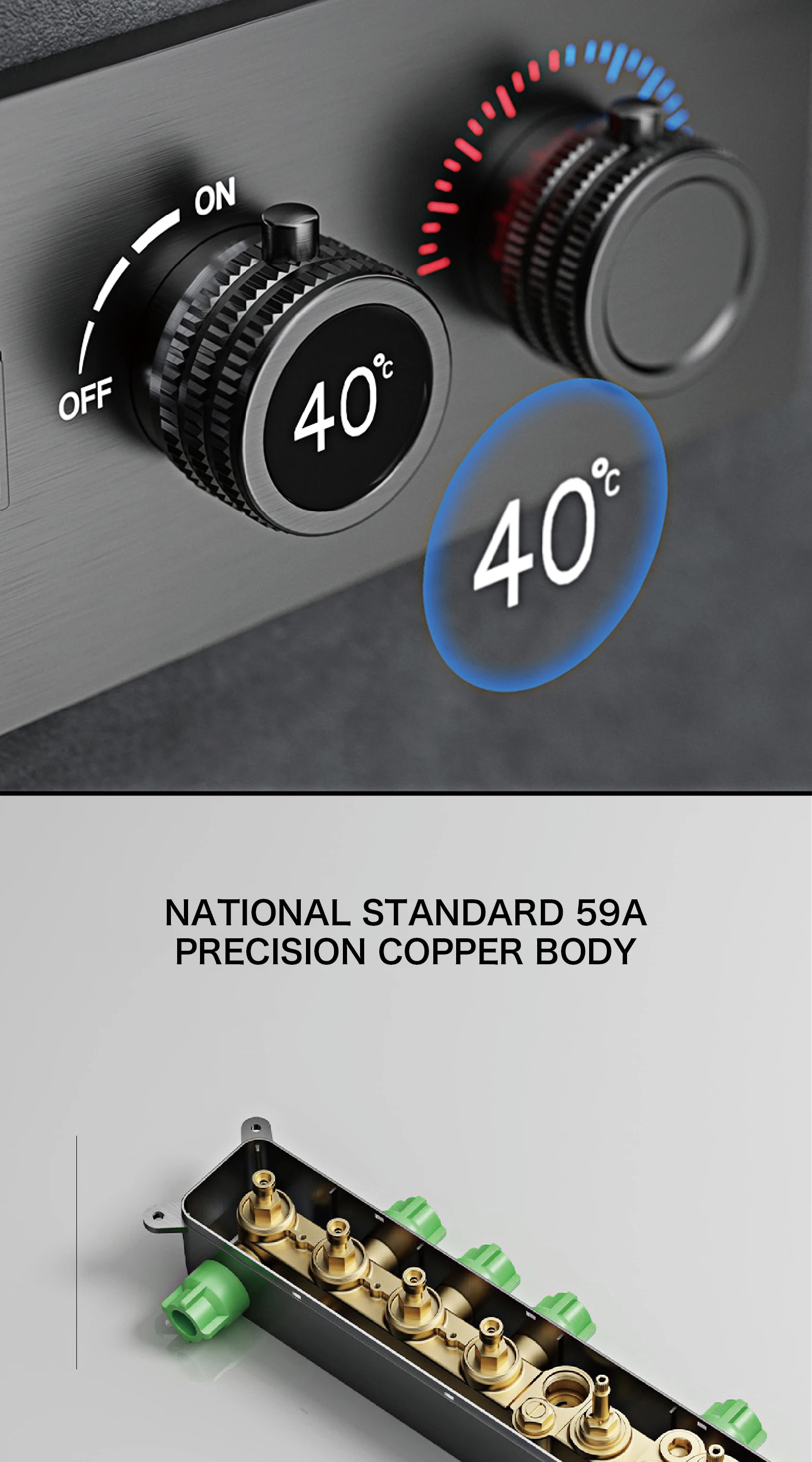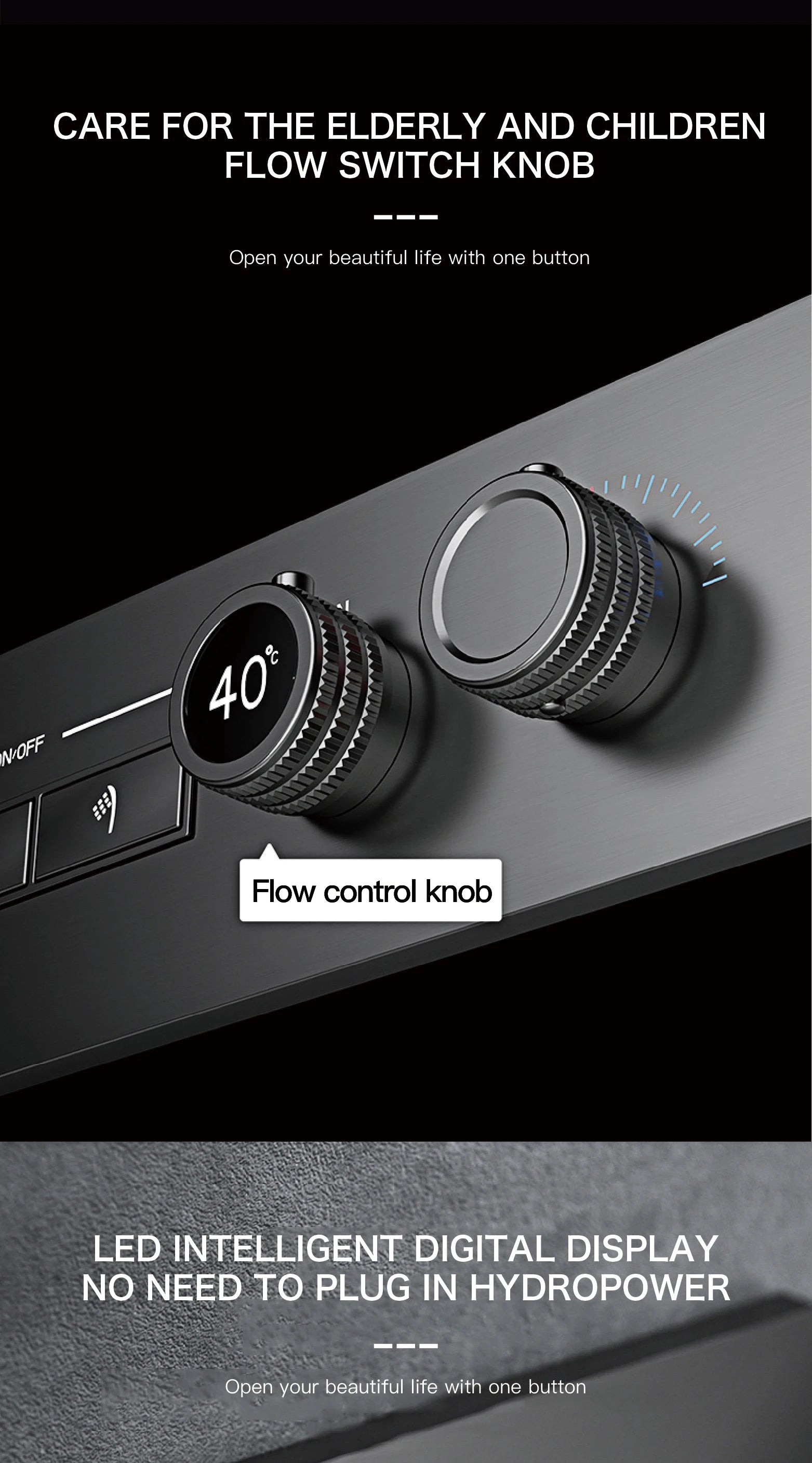 Modern brushed gold brass LED digital ceiling embedded shower system. Thermostatic 4-function waterfall/rain shower bathroom Tap