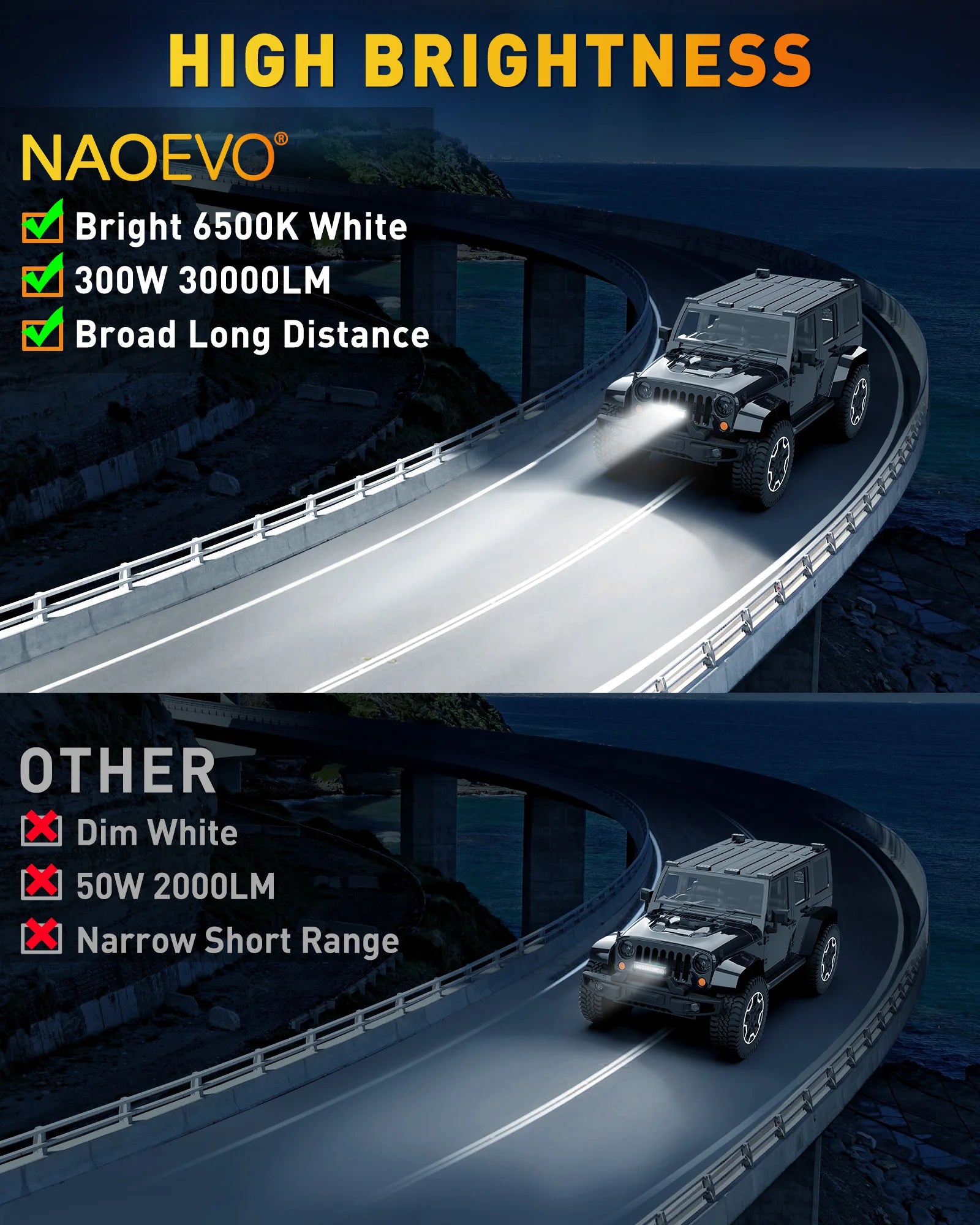 ●White light can be used as driving lights or work lights.