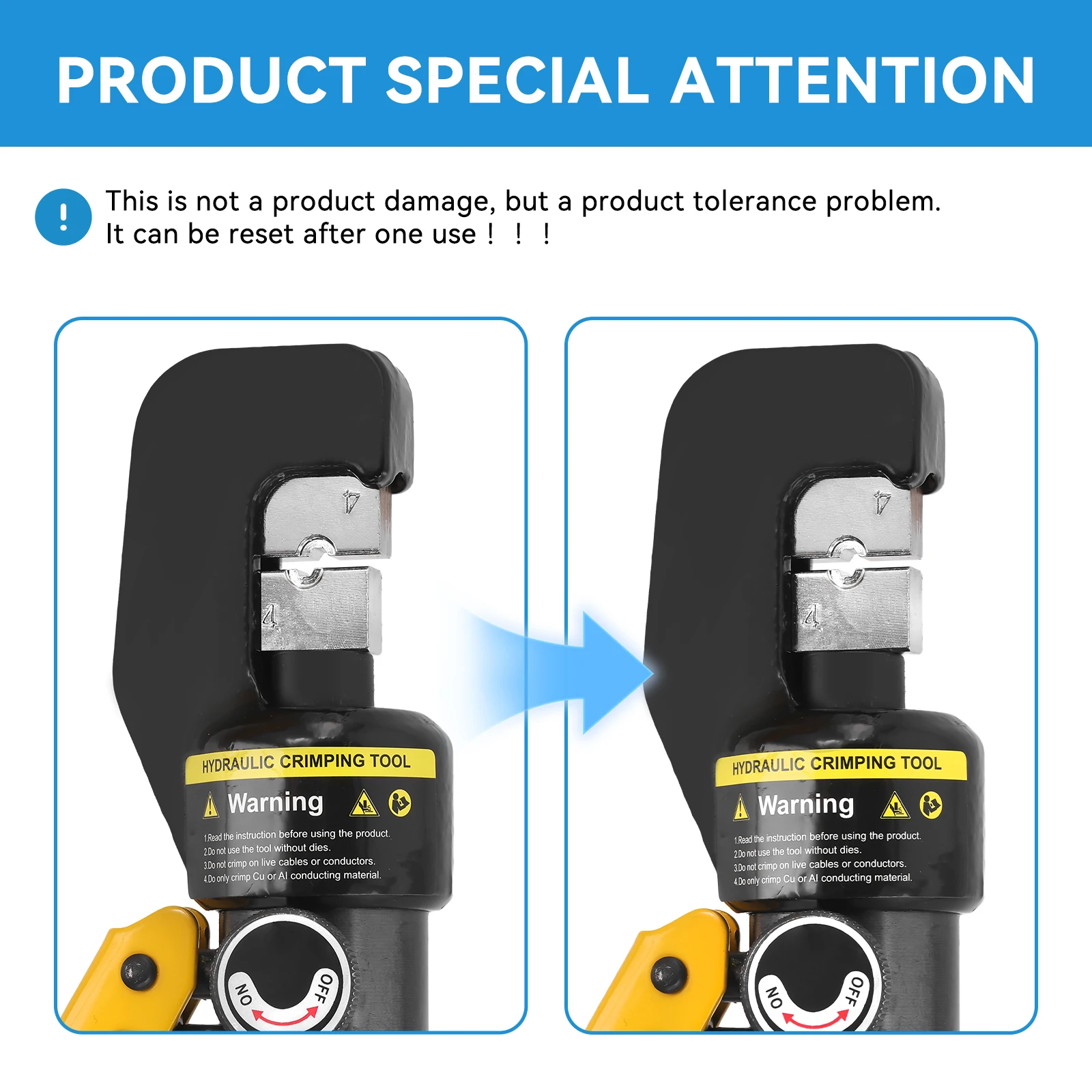 Warming Tips -- 1. Shake well before turning on the product as the internal liquid will settle after a long period of standing or prolonged transportation. 2. If the pressure fails after pumping, carry out the above steps. Besides, Cable Crimpers are double checked before leaving the factory.