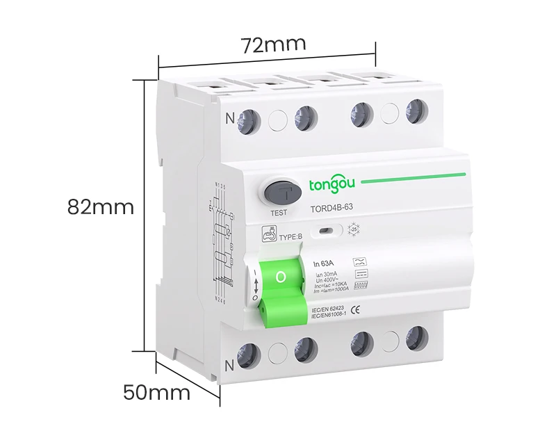 RCCB RCD DC Electric Vehicle EV Charging Pile Residual Current breaker 2P 63A 30mA Type B 10KA Din Rail Earth Leakage TONGOU
