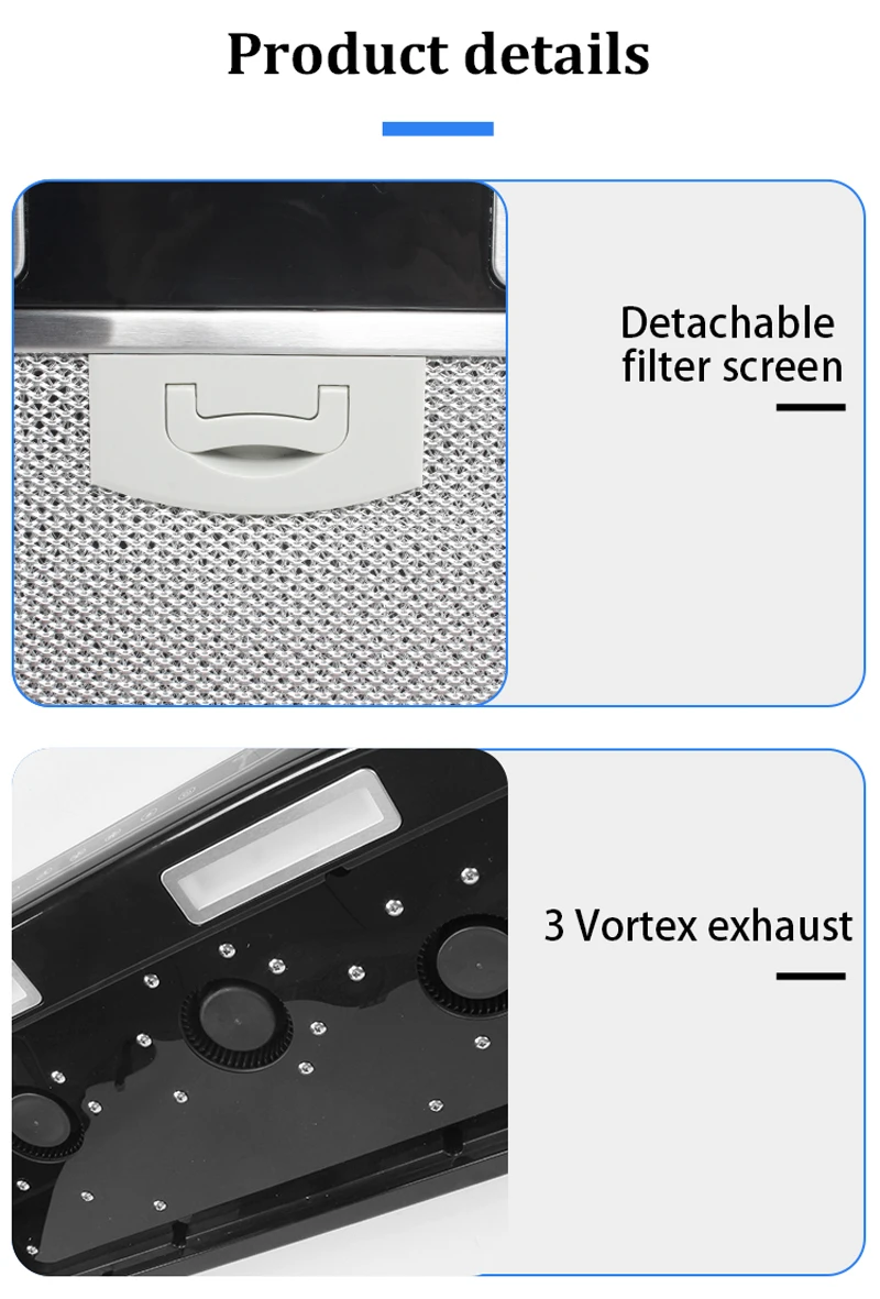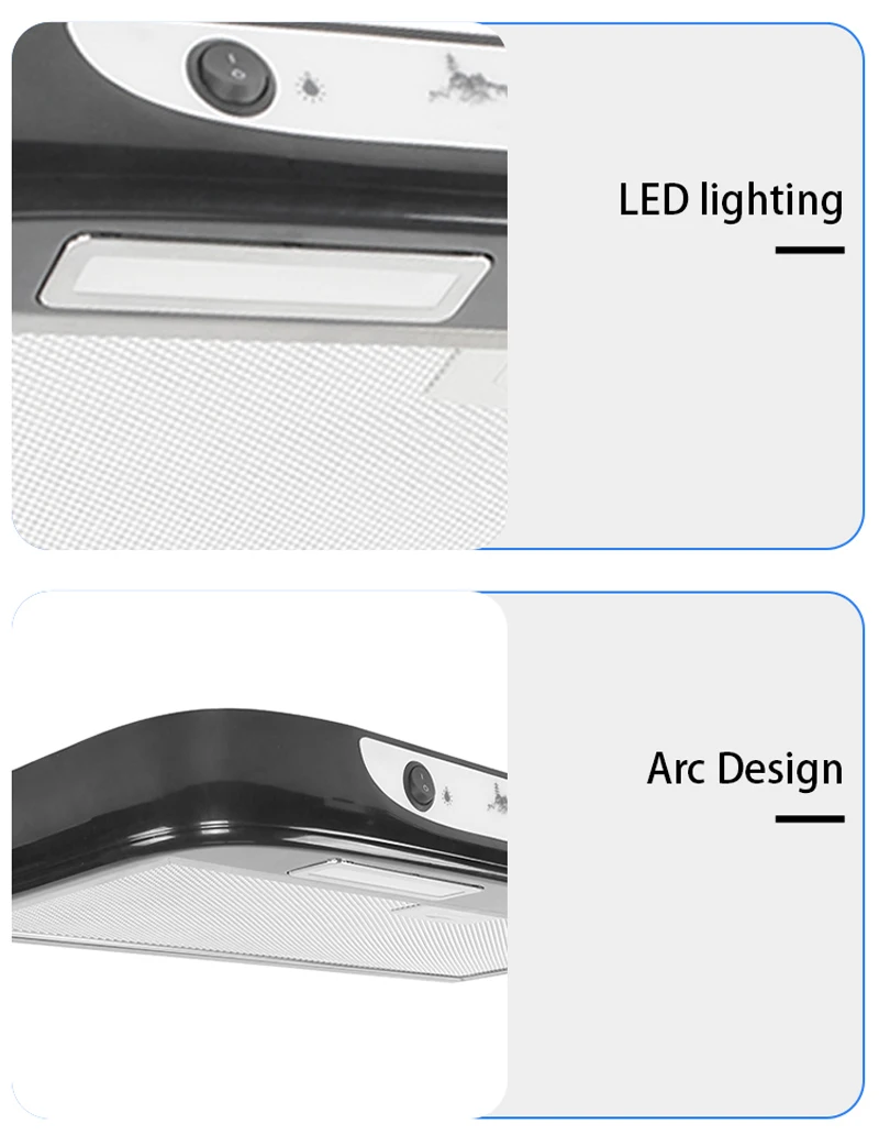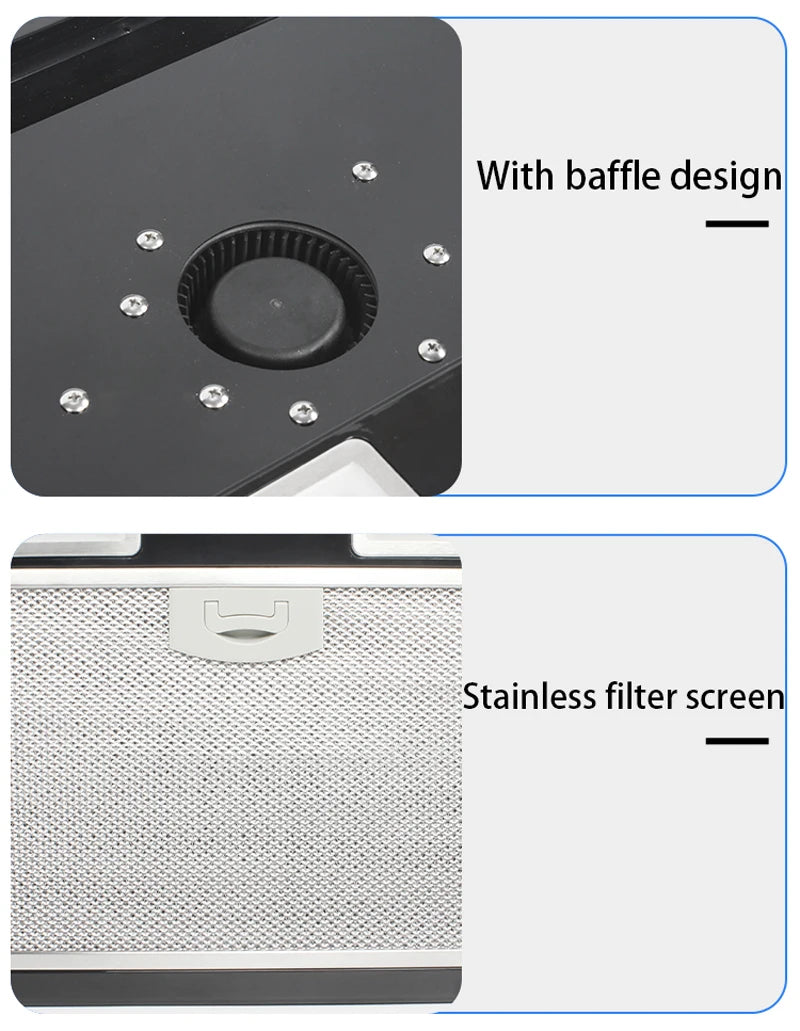 。Side exhaust design with high-power fan for rapid smoke & odor removal