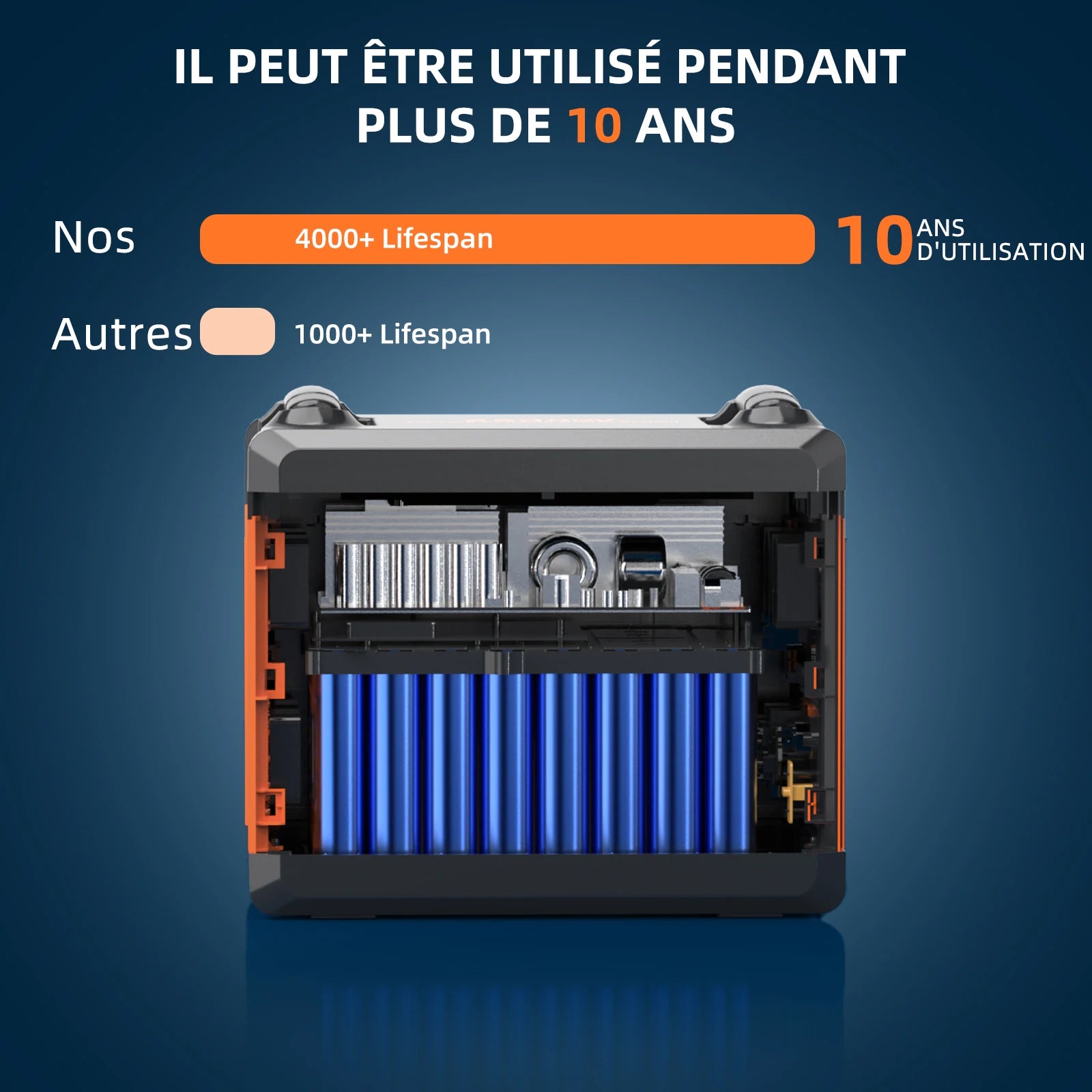 Durée du cycle: Plus de 3500 cycles a 80% de la capacité