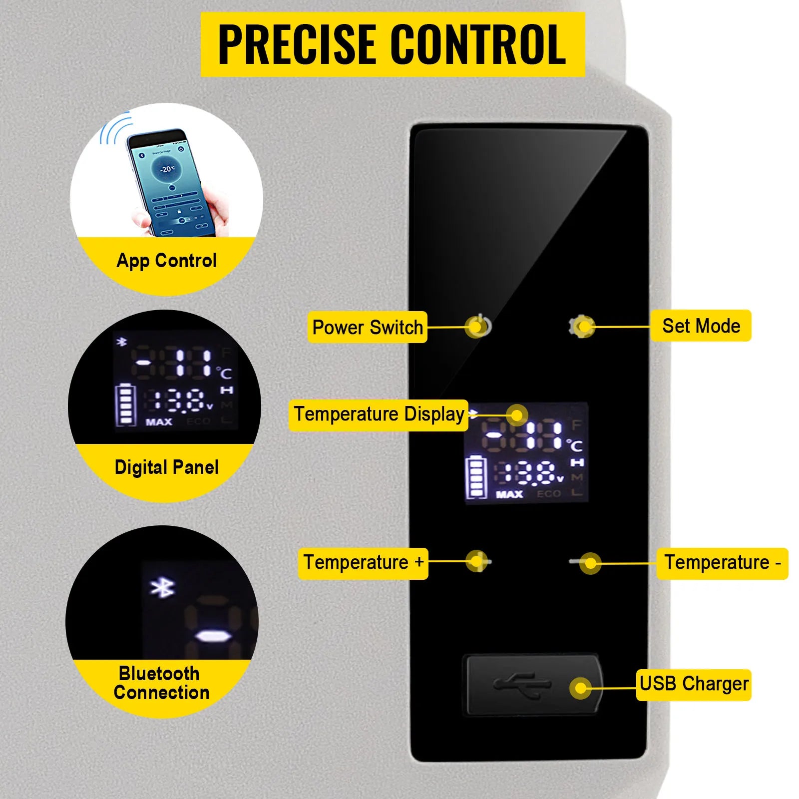 Intuitive Control Panel: Featuring an LED control panel, you can monitor and adjust the fridge's temperature range from -20°C to 20°C / -4°F to 68°F with ease. Bluetooth connectivity allows remote control via a mobile app, enhancing convenience.