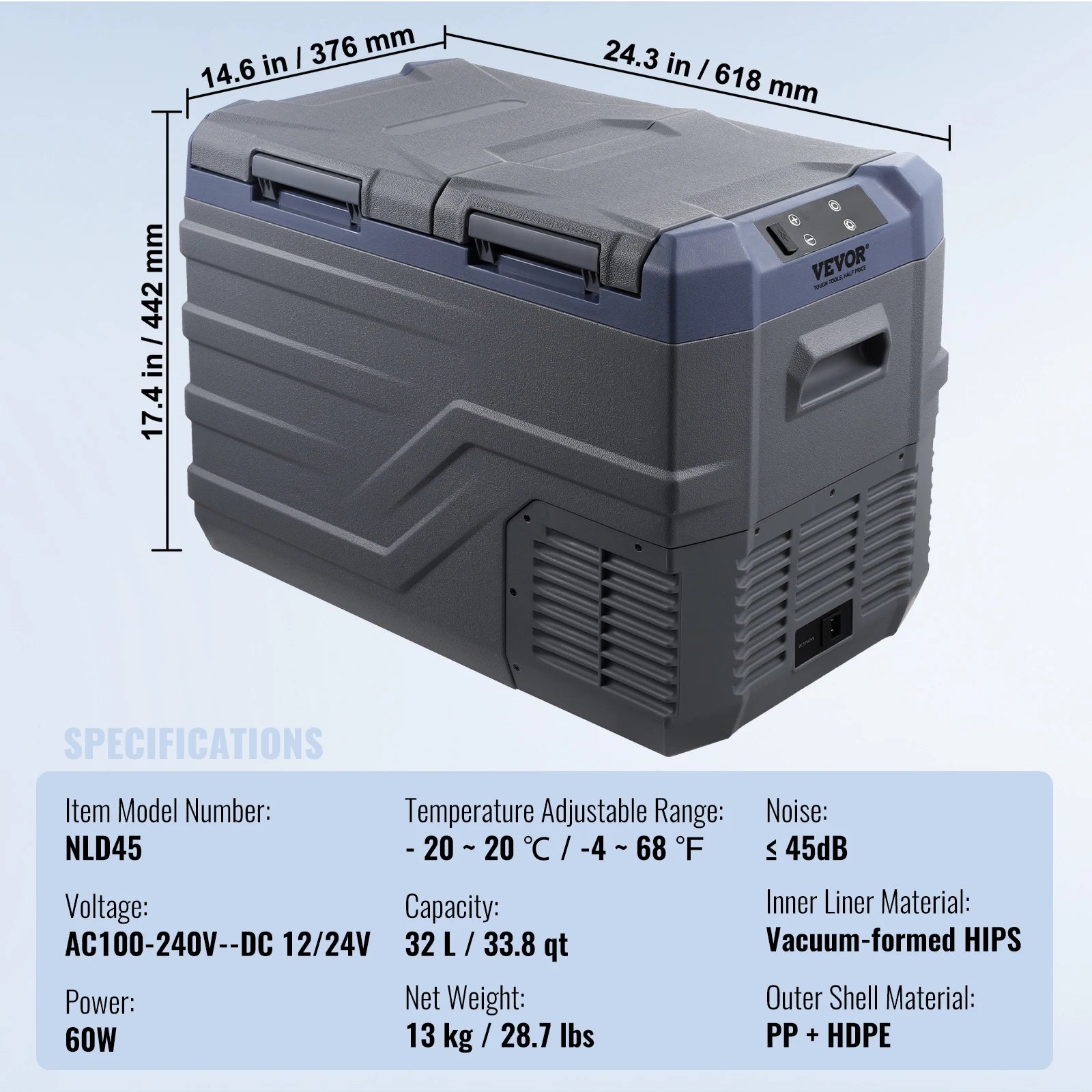 This portable refrigerator has a thickened insulation layer and a sturdy PP + HDPE shell that is shockproof and drop-resistant.