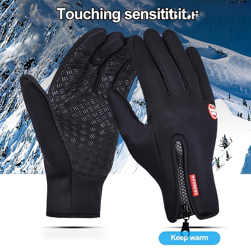 [Warm Touchscreen Gloves] 1 Pair Warm, Comfortable Unisex Winter Touchscreen Gloves - Non-Slip Fleece-Lined with Zipper Closure, Blue & Black Design for Outdoor Sports, Hiking, and Cold Weather Activities, Hiking Accessories