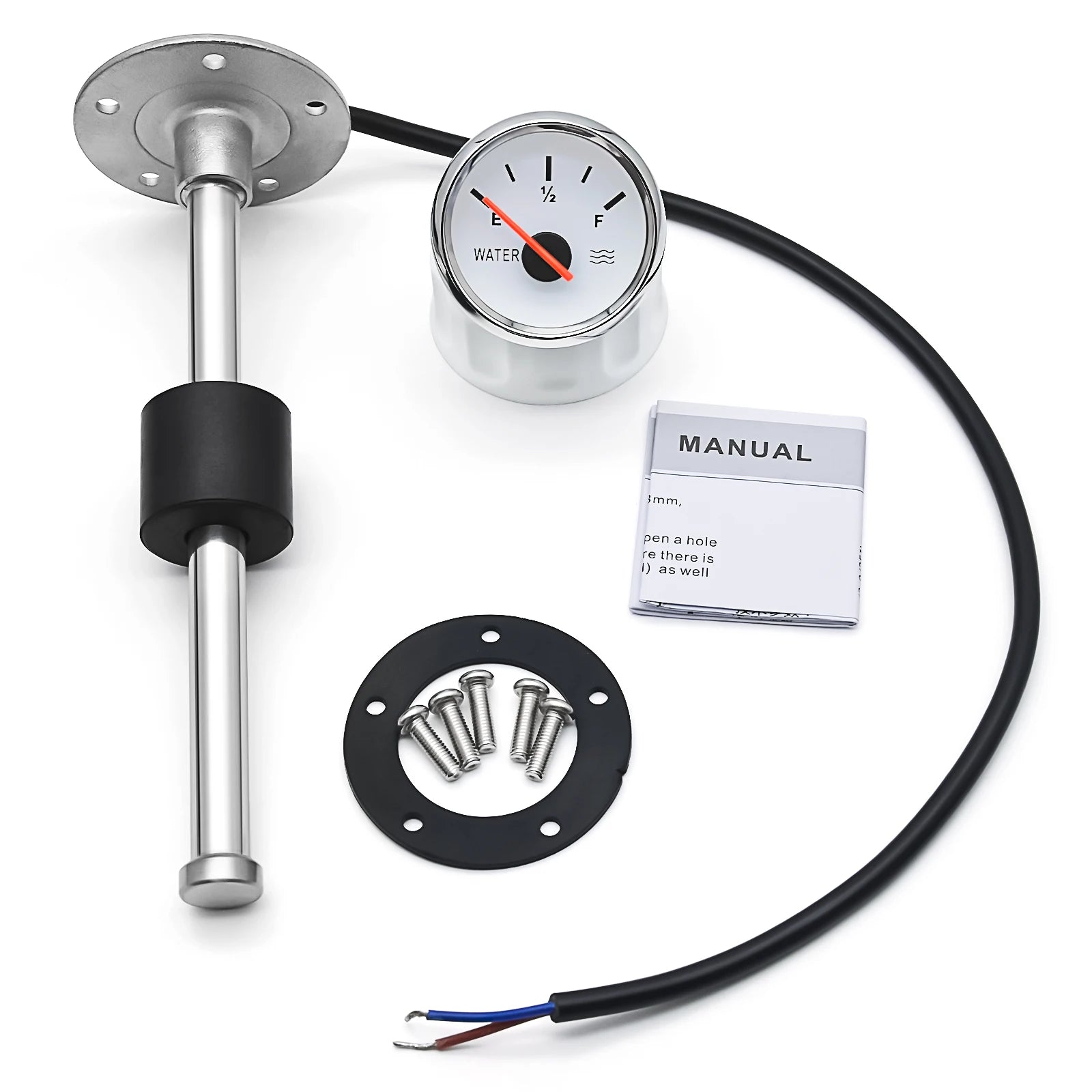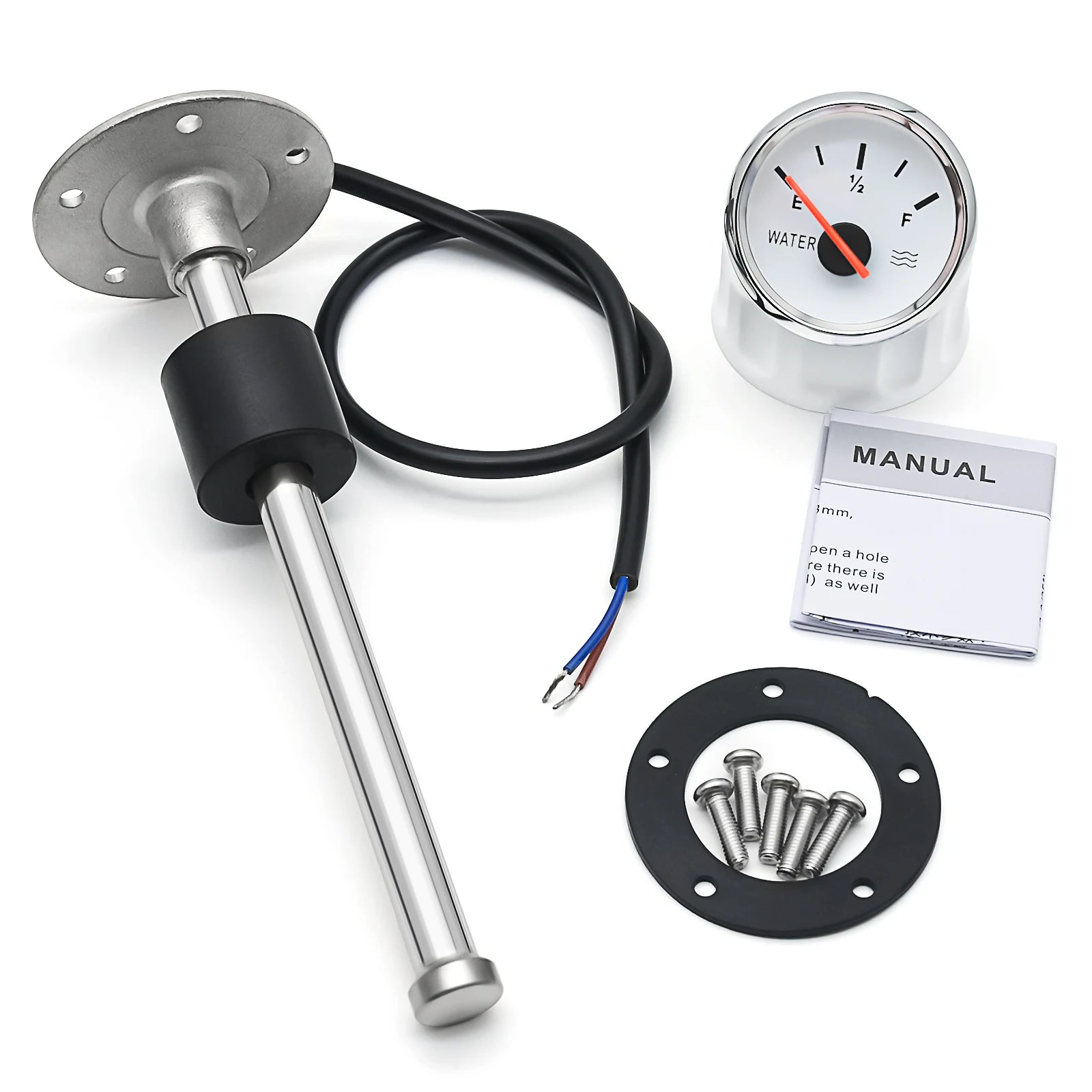 Water Level Gauge Water Level Sensor 52mm Water Level Meter Indicator With Red Light 100-500mm 0-190 Ohm Sensor 12V24V Custom