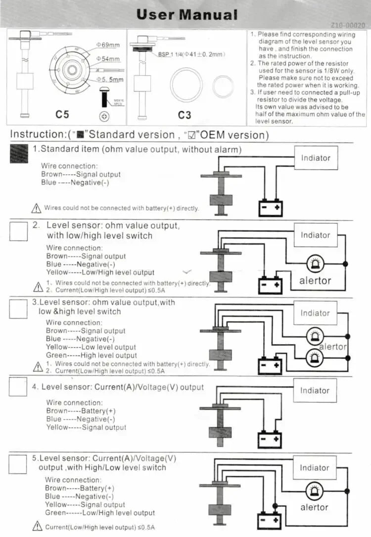 -Water Level Gauge Signal:0~190 ohm (European standard), if you need 240~330 ohm fuel gauge you can contact me
